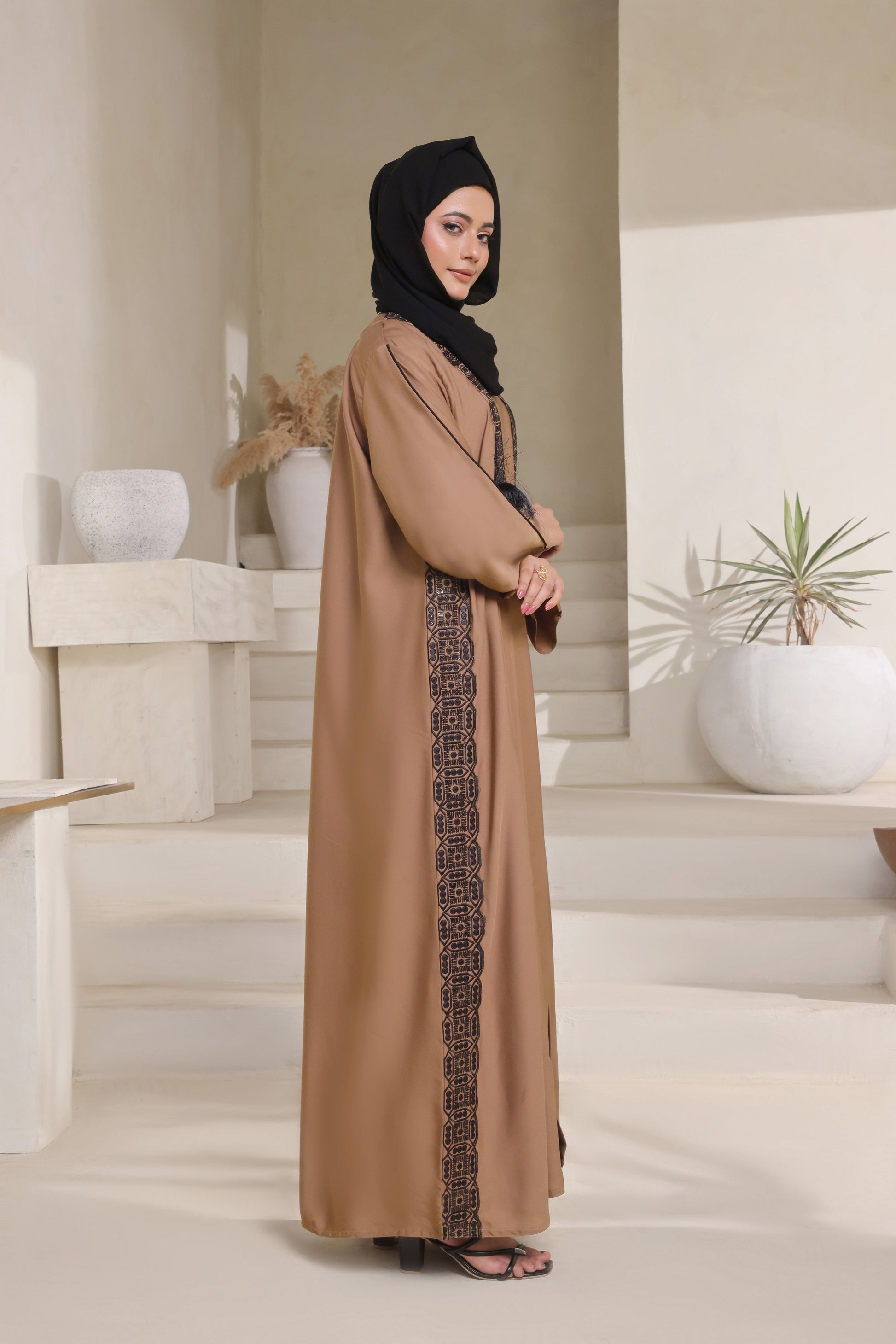 Step into a world of earthy elegance with the Desert Dusk Abaya β your go-to for refined yet expressive modest fashion.