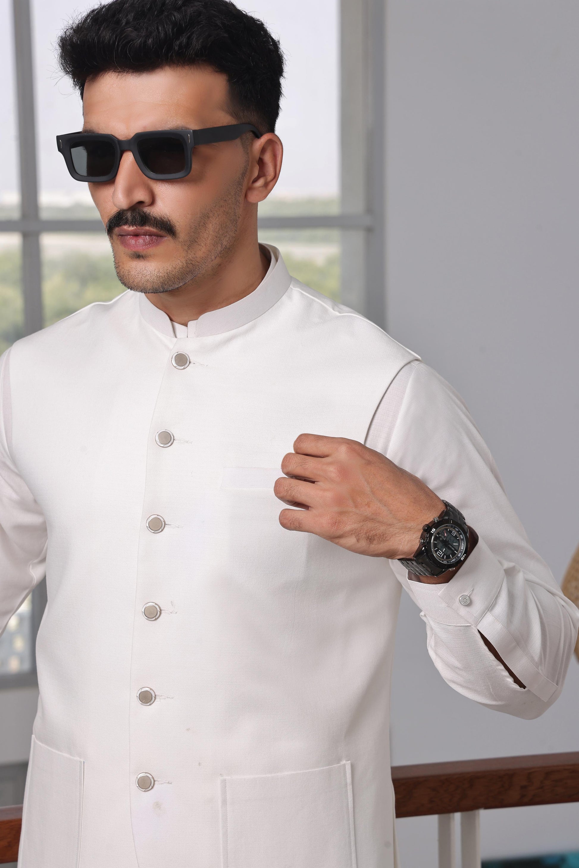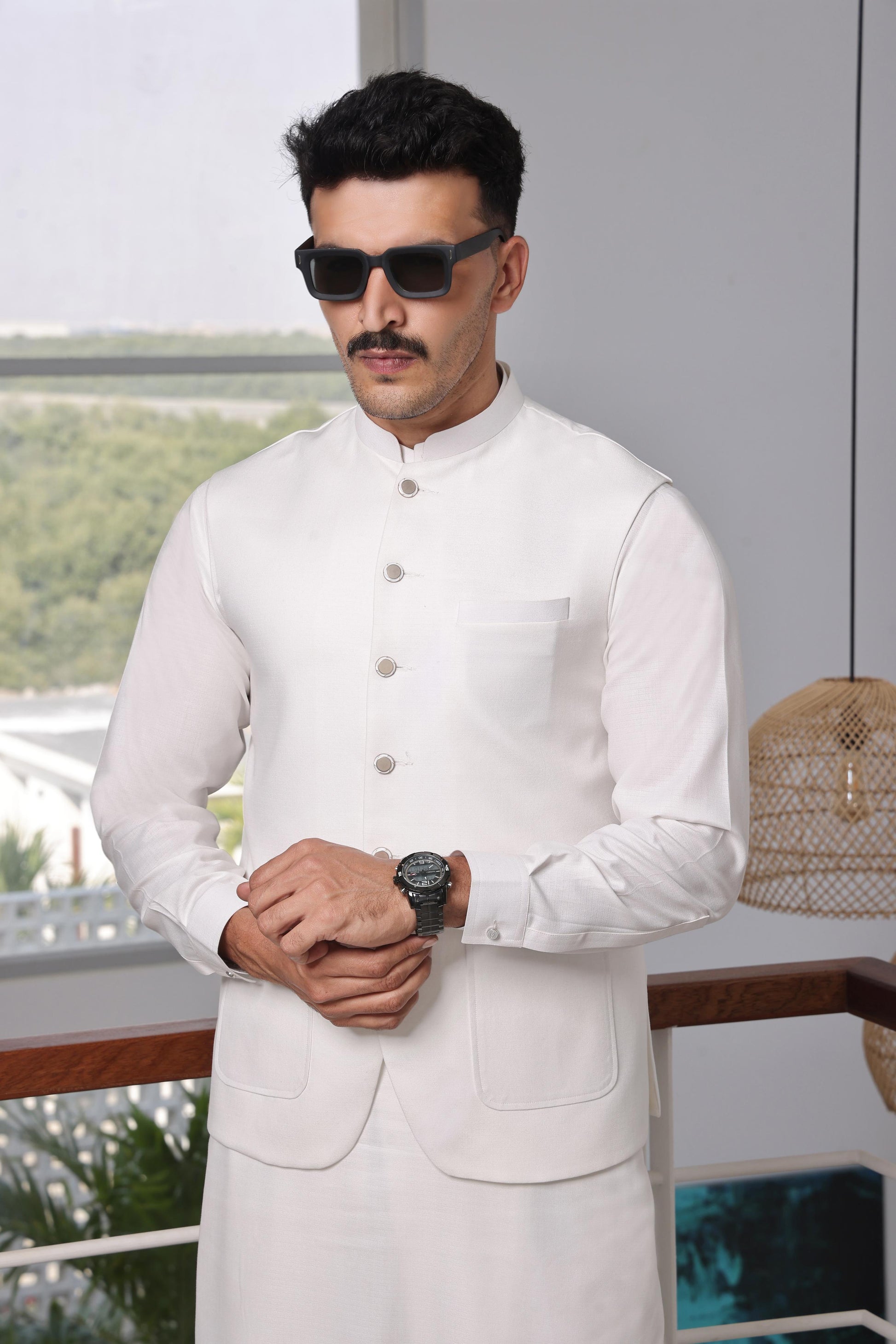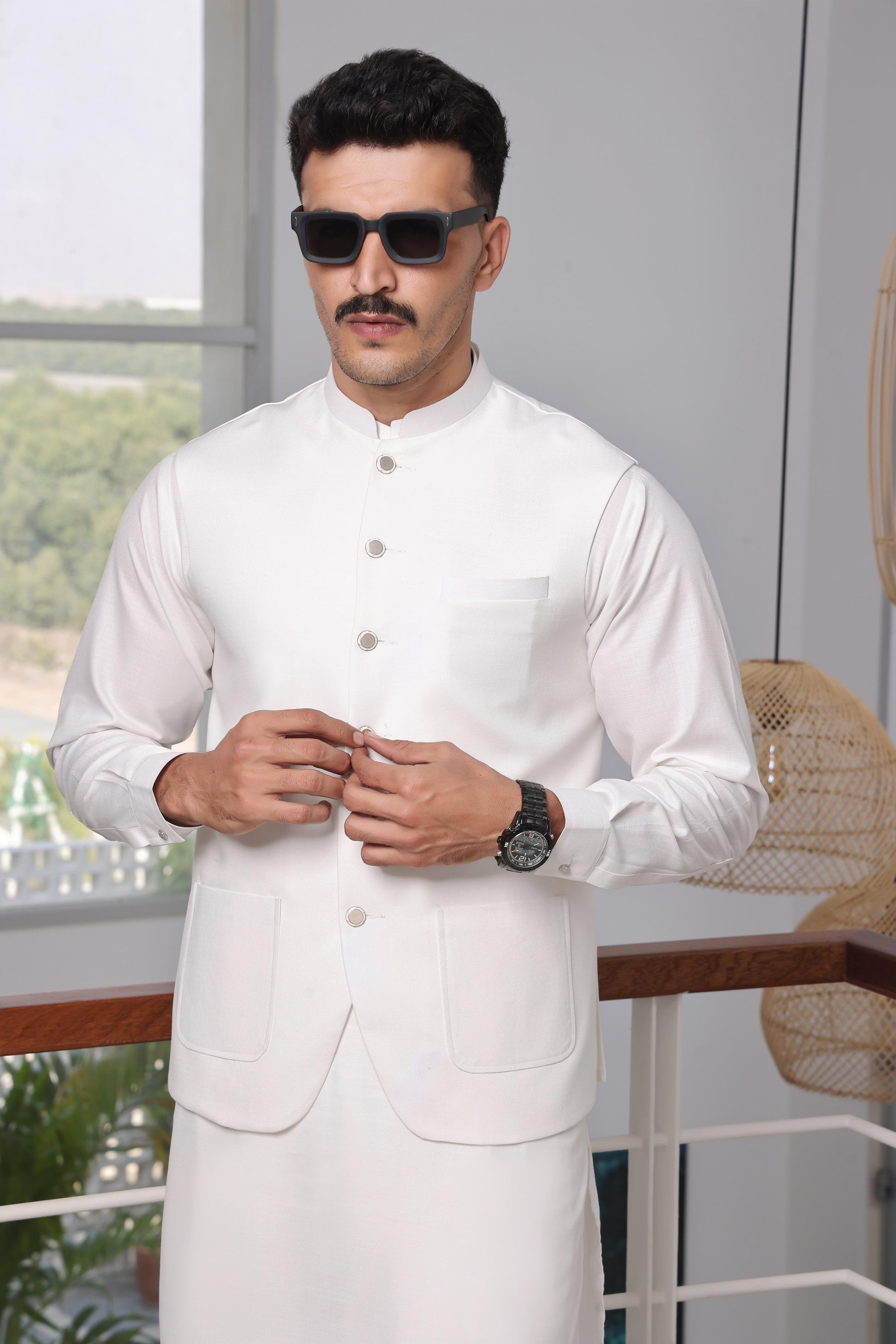 Men's Formal Suiting Punch Pocket Waistcoat with Matching Blended Kameez Shalwar .