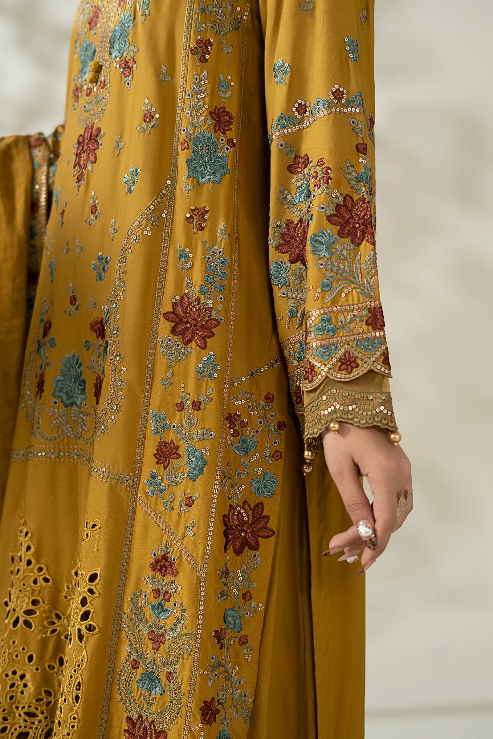 Pearl Drop Detailing On Sleeves & Border