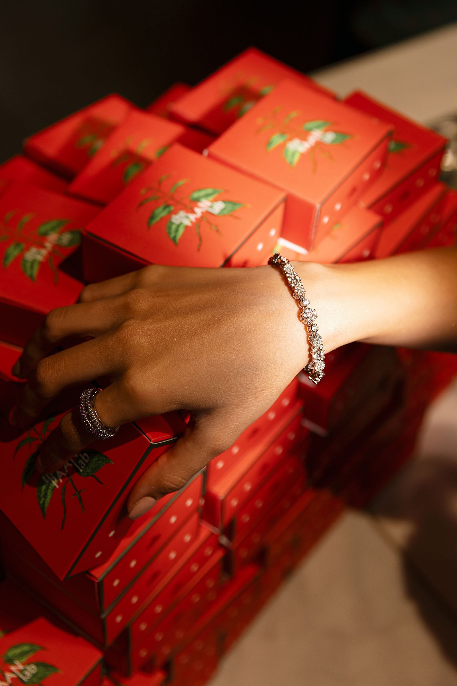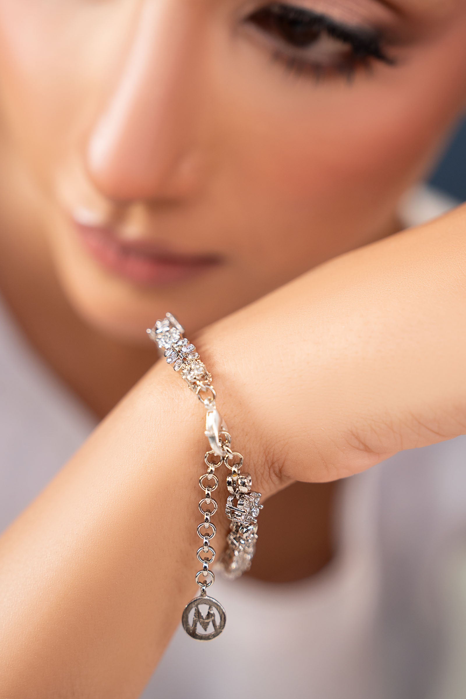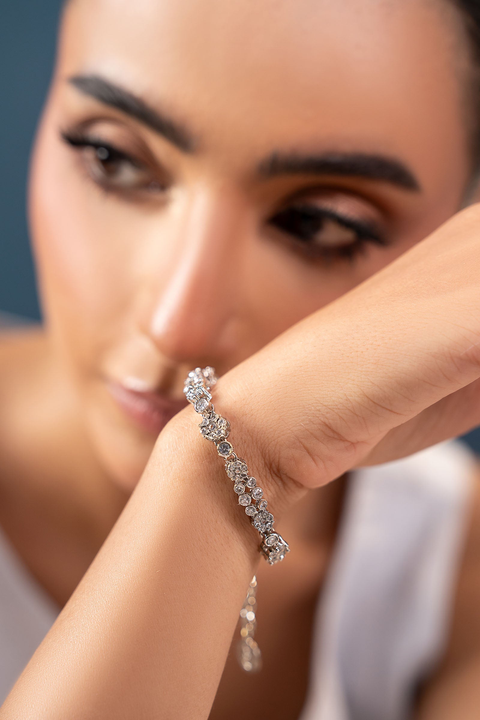 Adding sparkle to your overall look with our intricately designed bracelet that showcases delicate zircons artistry in glistening white hue so you can make statement effortlessly.