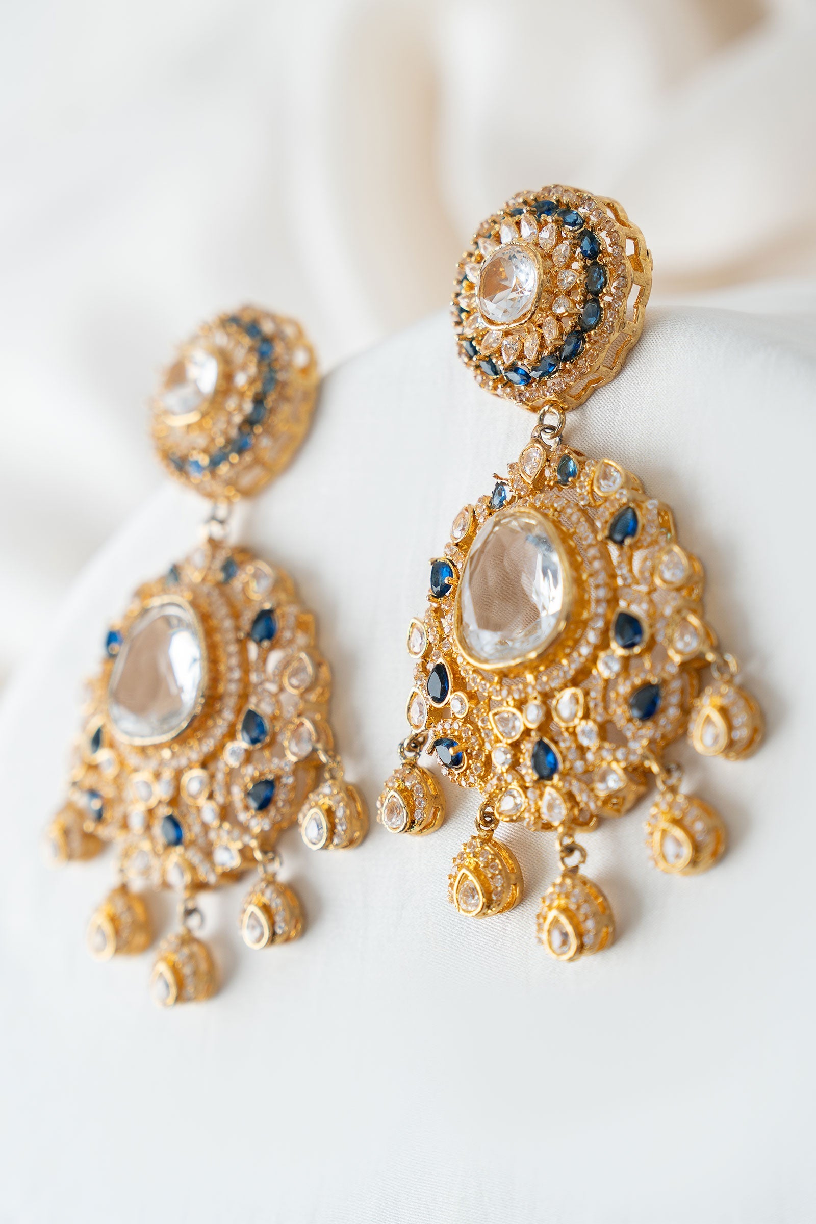 These classic earrings exude regal beauty thanks to their exquisitely created combination of champagne and white zircons with blue tourmaline stones. A perfect addition to add sparkle and refinement to your traditional look.