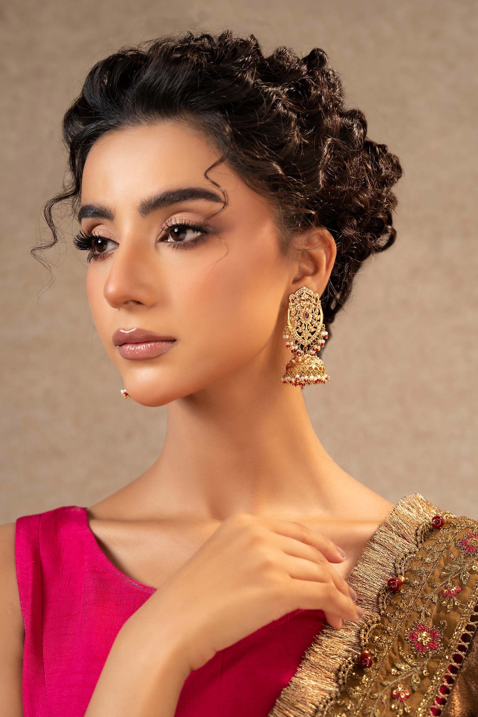 These handcrafted earrings are a tribute to classic beauty, combining a striking display of white pearl pyroi with the gentle glow of pink chatham. Each component, which is accentuated with a vivid red poth, narrates a tale of tradition, creativity, and festive elegance; it is ideal for creating a stately impression.