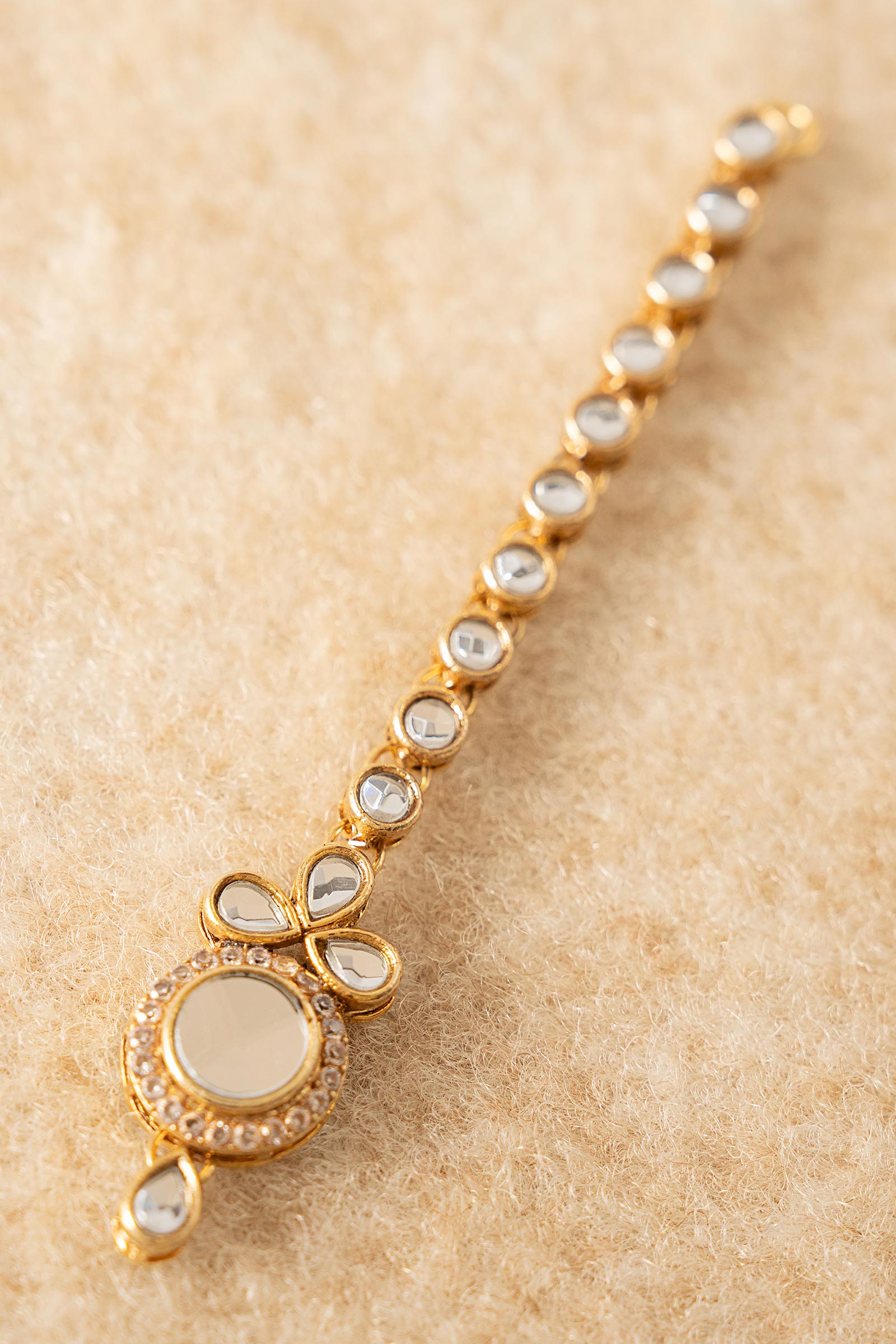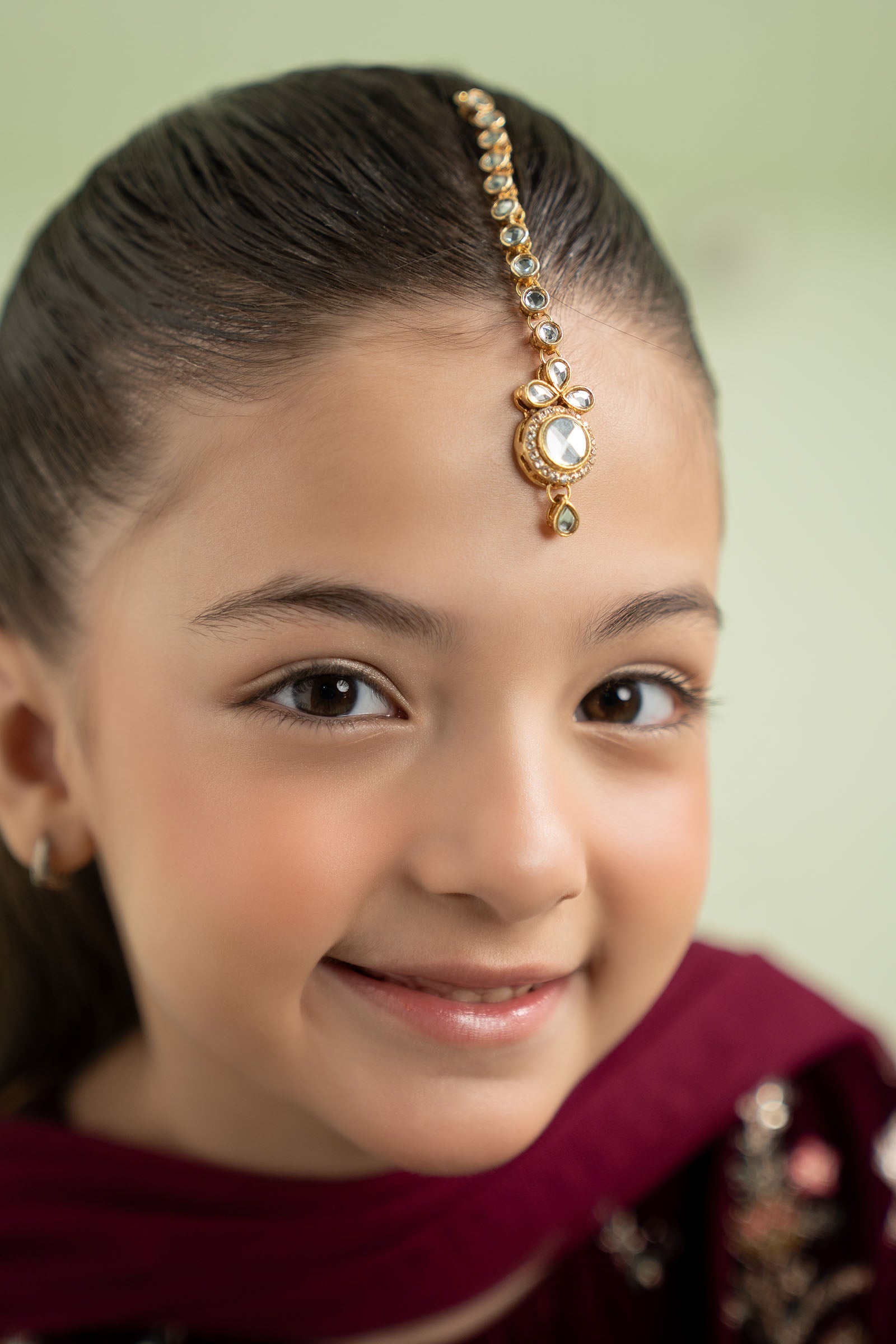 Let your little star shine bright with this delightful festive tikka, featuring shimmering white handcut glass and sparkling white zircons. A perfect blend of innocence and elegance, crafted to add a magical touch to every celebration.