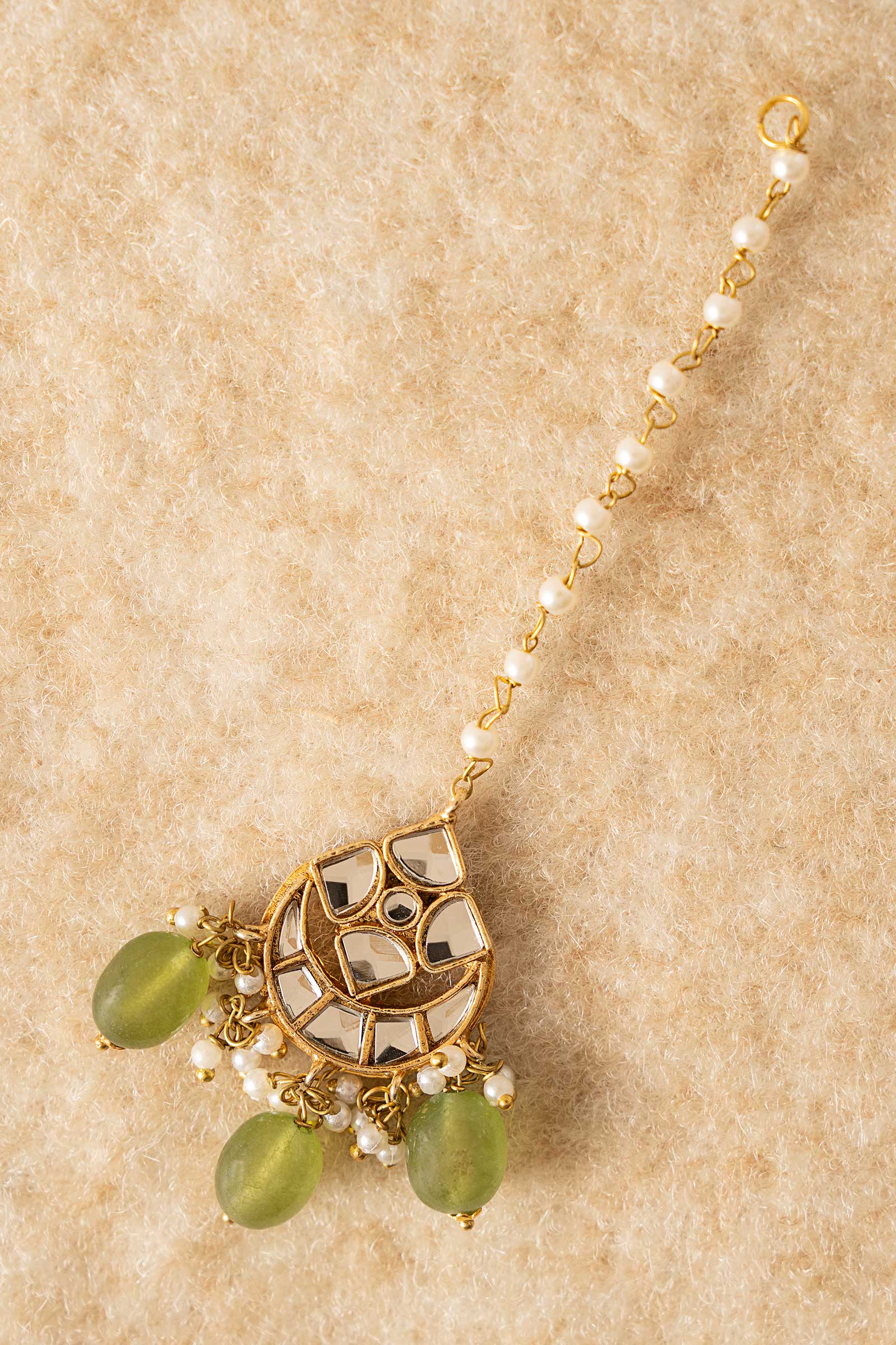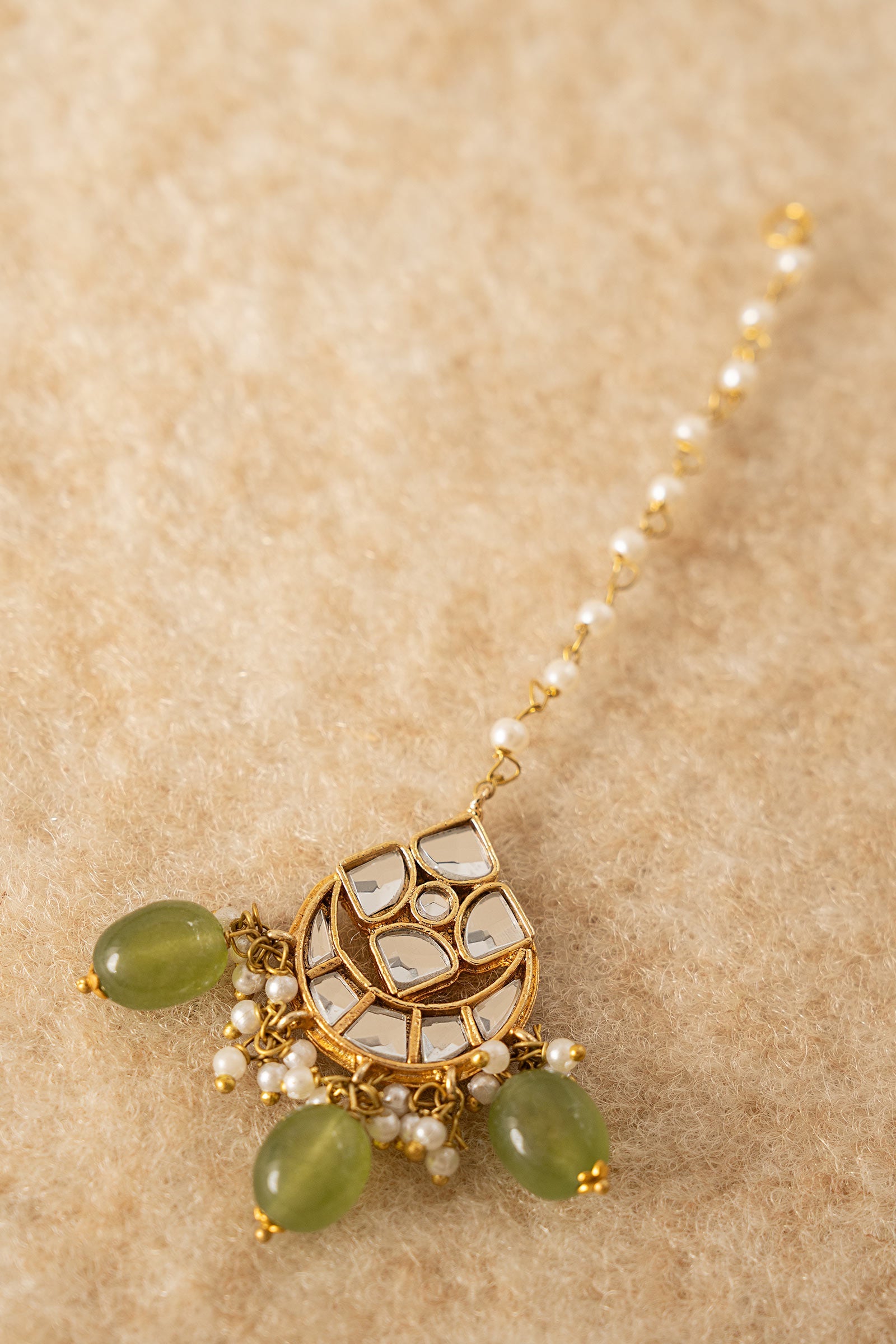 This charming kids tikka, which features exquisite pearl pyroi, glittering white handcut glass, and vivid jade green stones, will add a dash of festive magic to your child's ensemble. a flawless fusion of charm and tradition that is intended to provide additional uniqueness to every gathering.