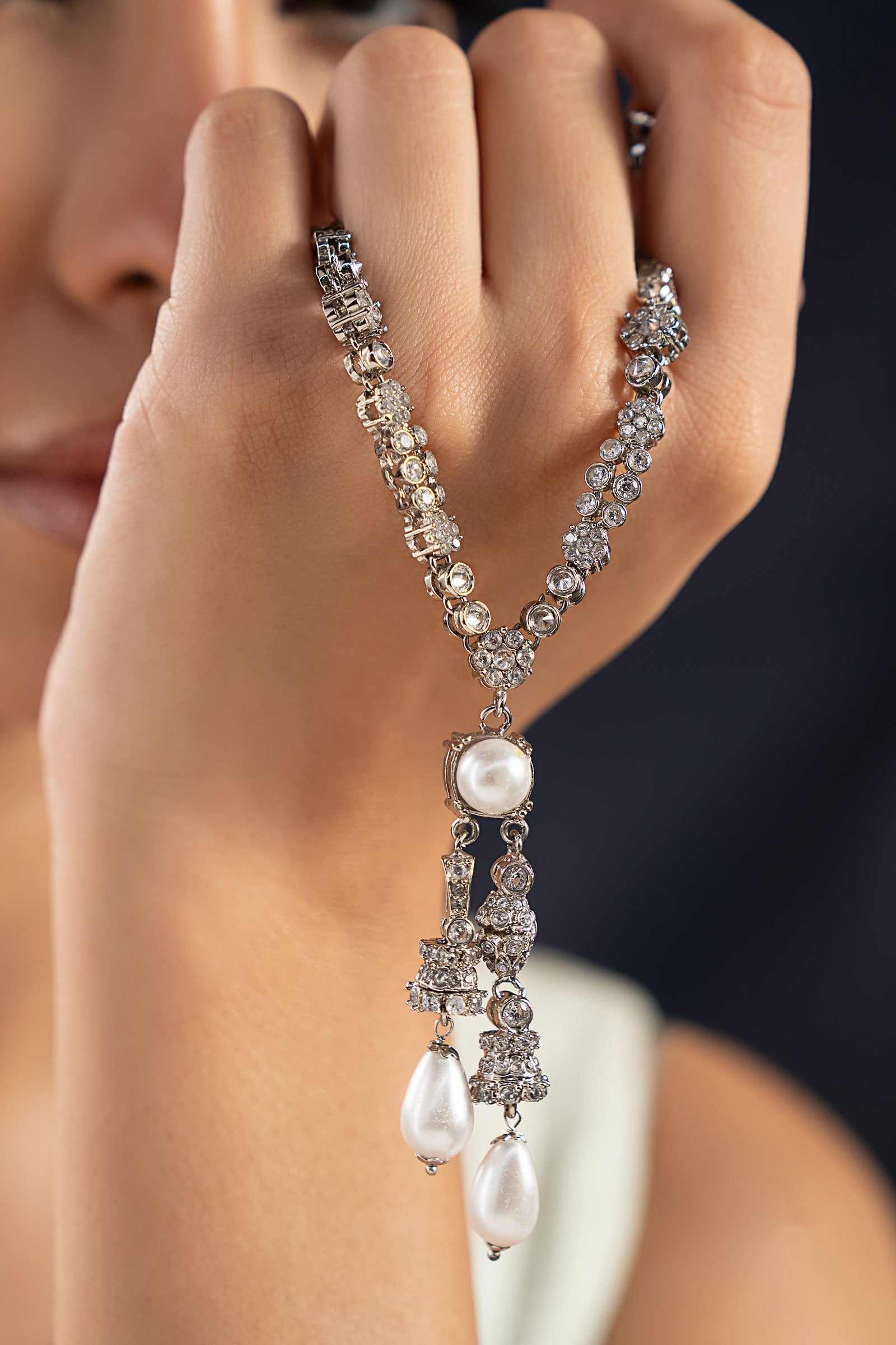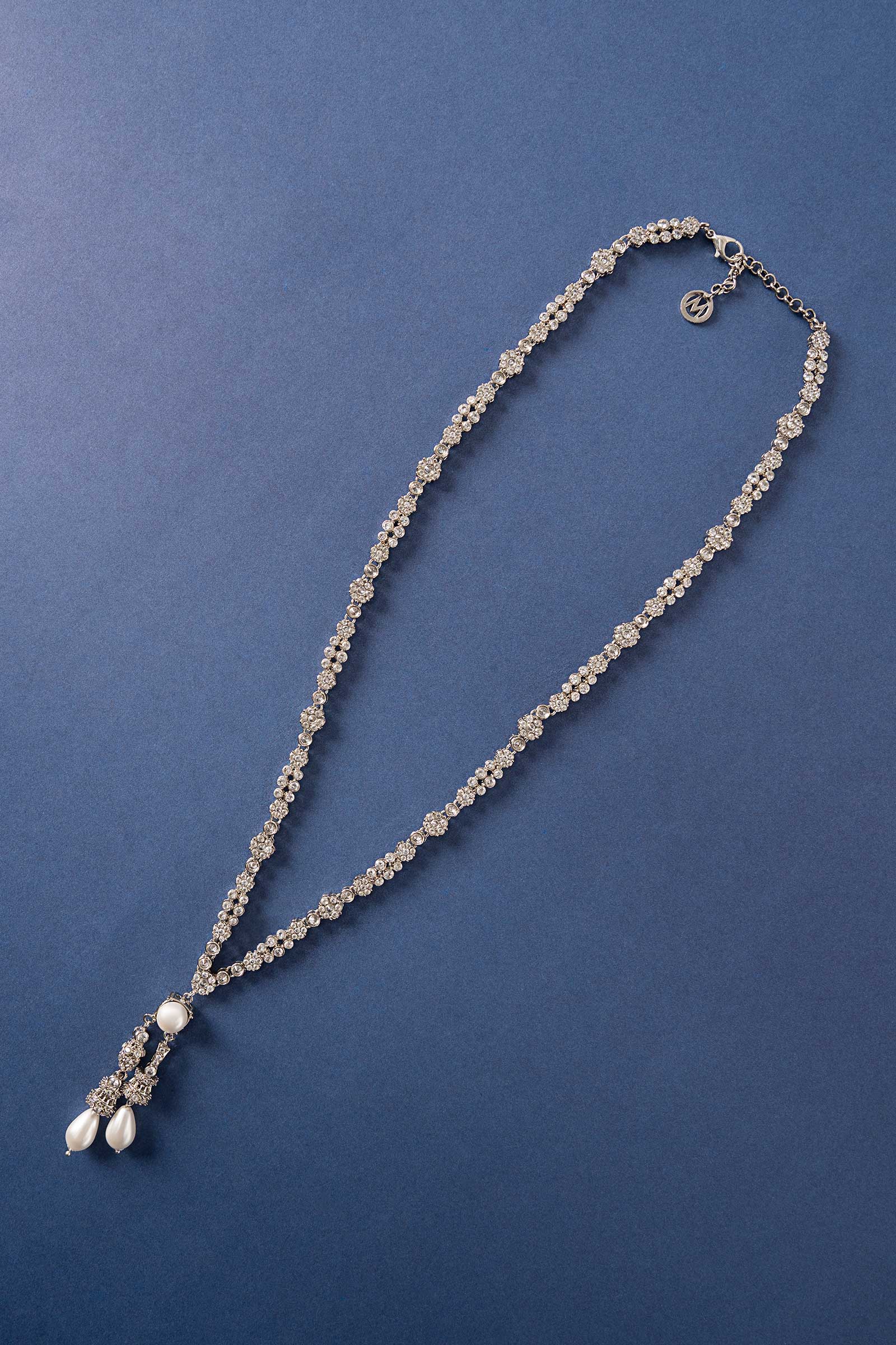 Sleek and sophisticated, this pendant pairs the classic glow of white pearls with the modern sparkle of white zircons. It gives your celebration style a new, sophisticated touch and is ideal for festive gatherings.