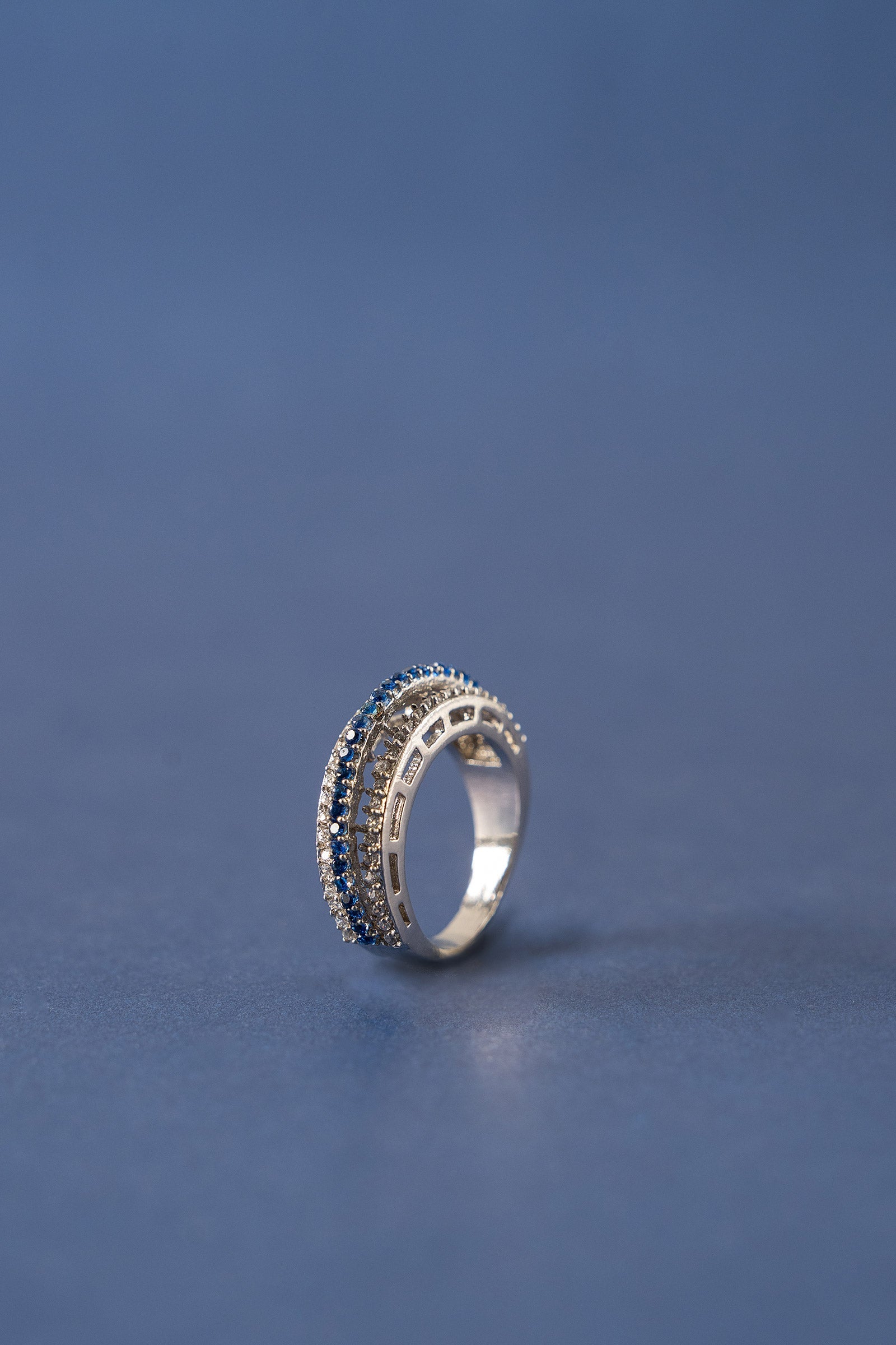 A dance of delicate sapphire blue and sparkling white zircons, this ring captures the essence of modern celebration. Soft yet striking, it’s a radiant ode to festive joy and timeless elegance — perfect for moments that sparkle with meaning.