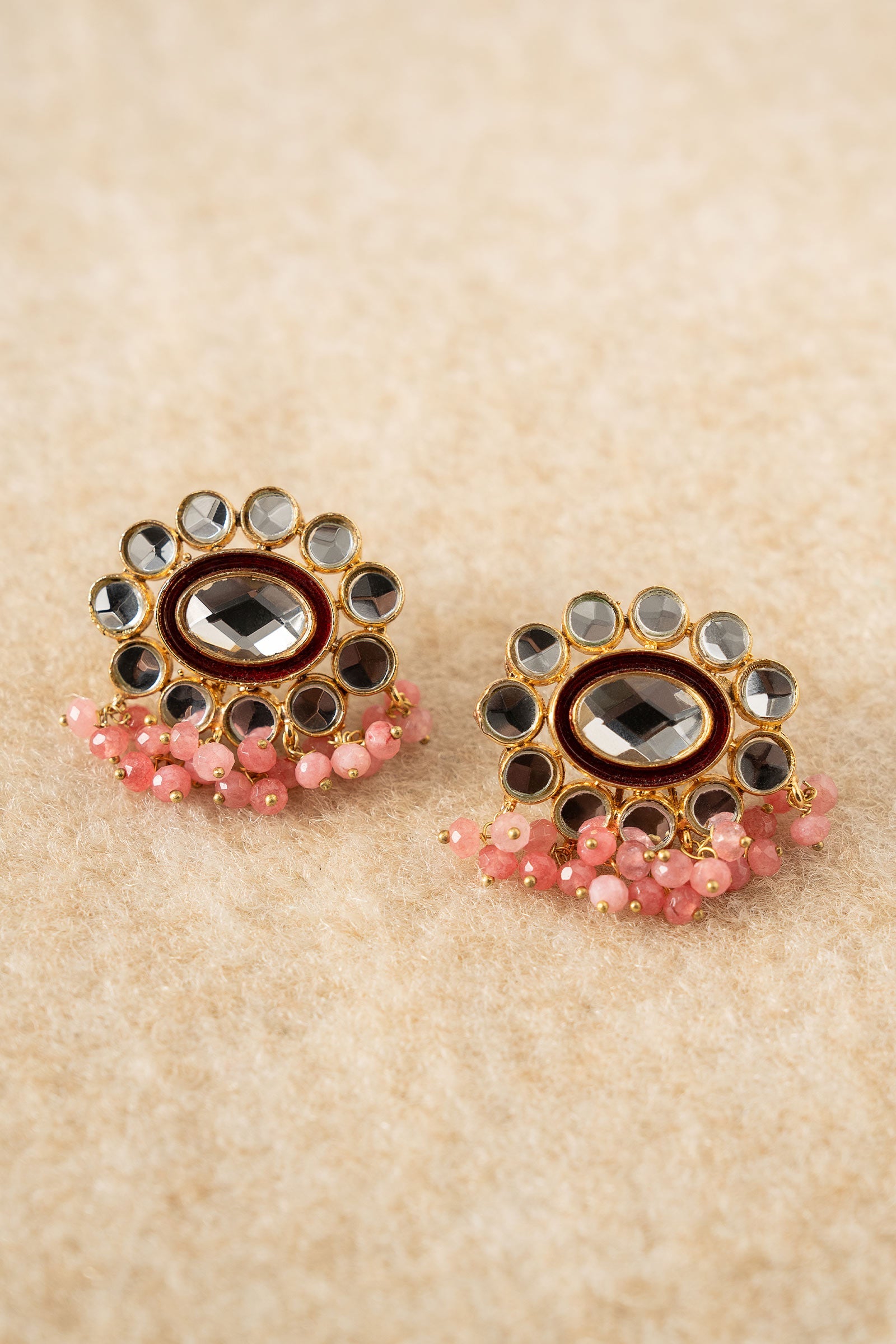 This lovely 2PC necklace and earrings combination combines the delicate blush of light pink onyx with the immaculate shine of white handcut glass in a charming fusion of tradition and color. It is a poetic homage to tradition, designed to add timeless charm to your celebrations, and it is accentuated with vivid red enamel, capturing the essence of festive joy and timeless elegance.