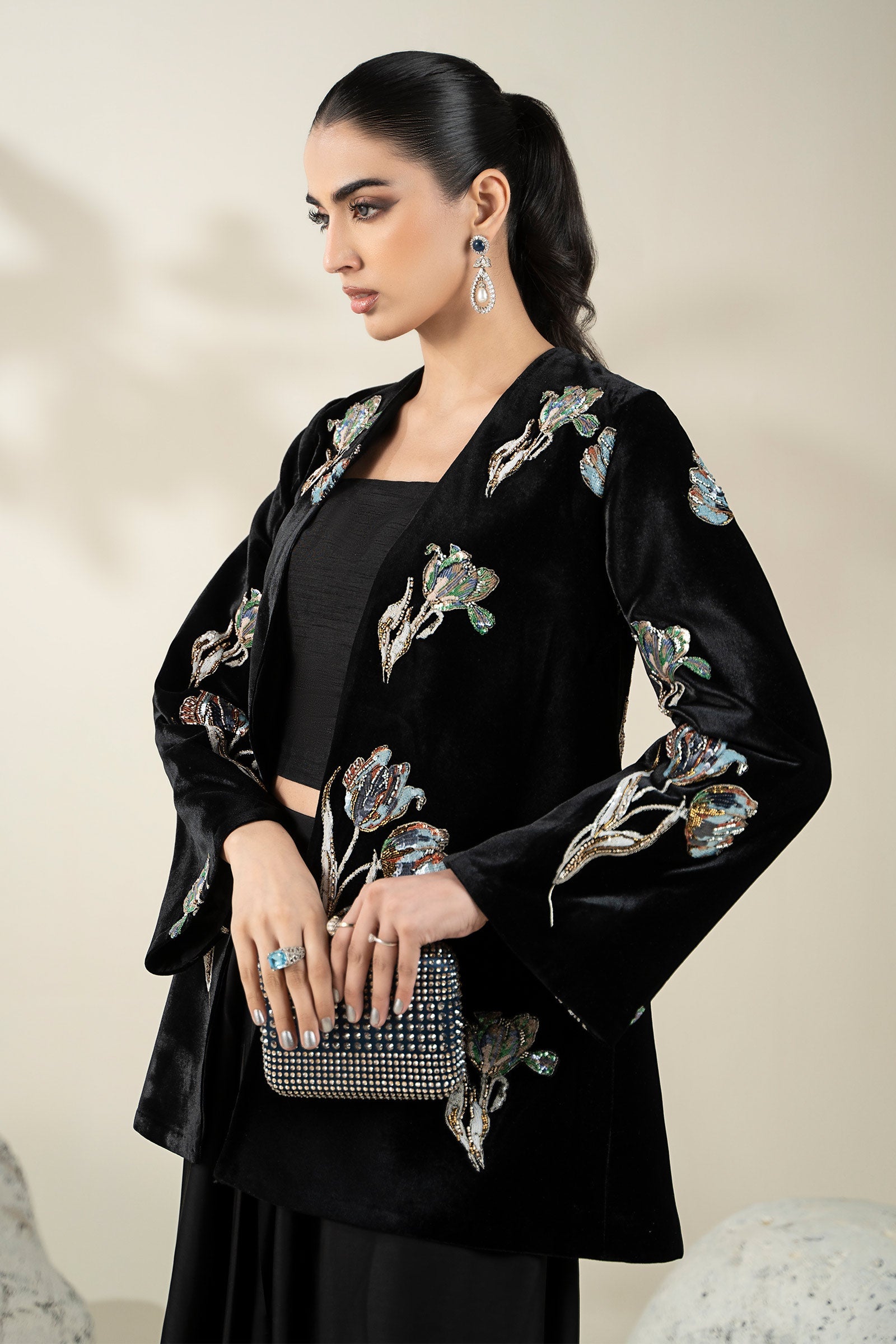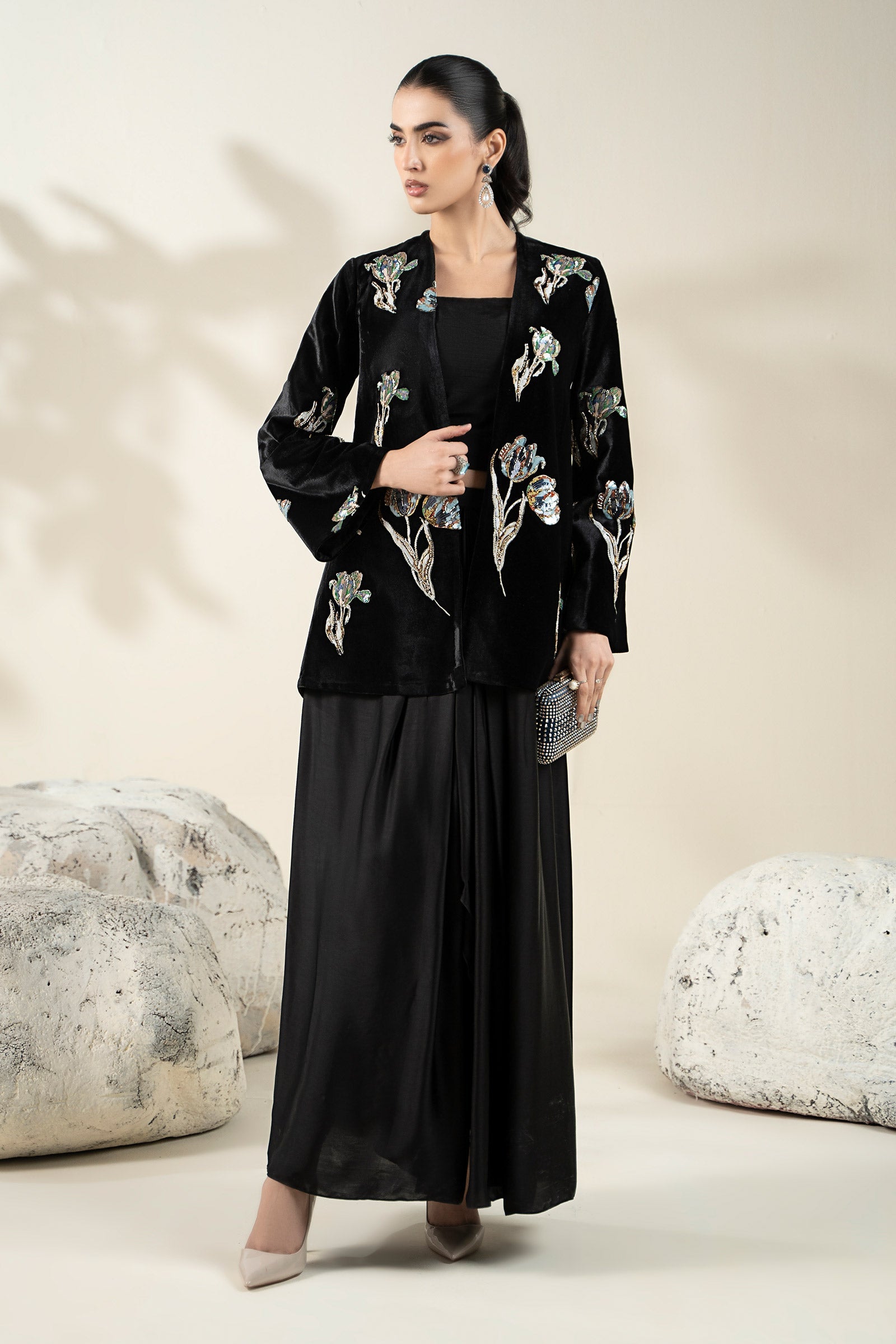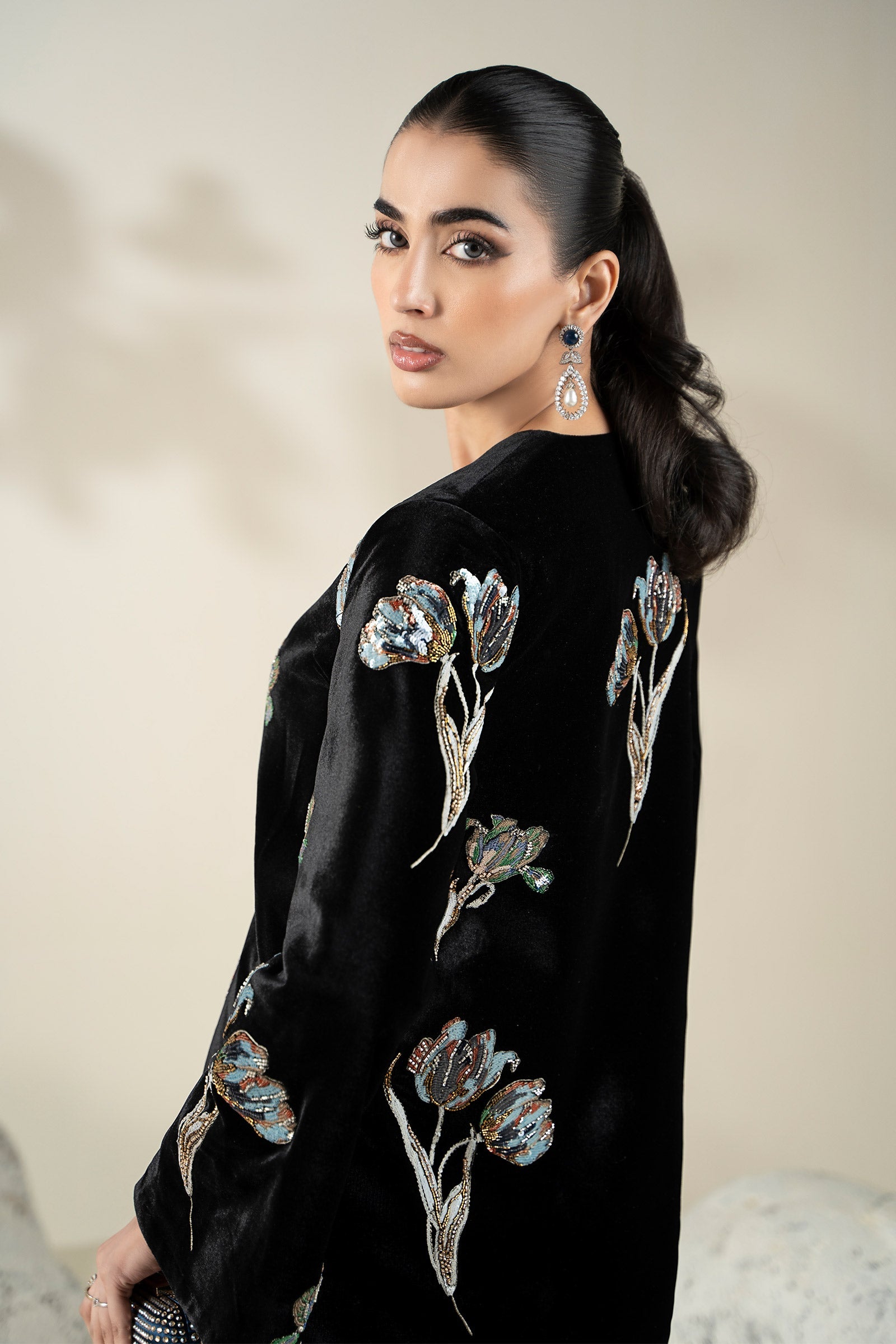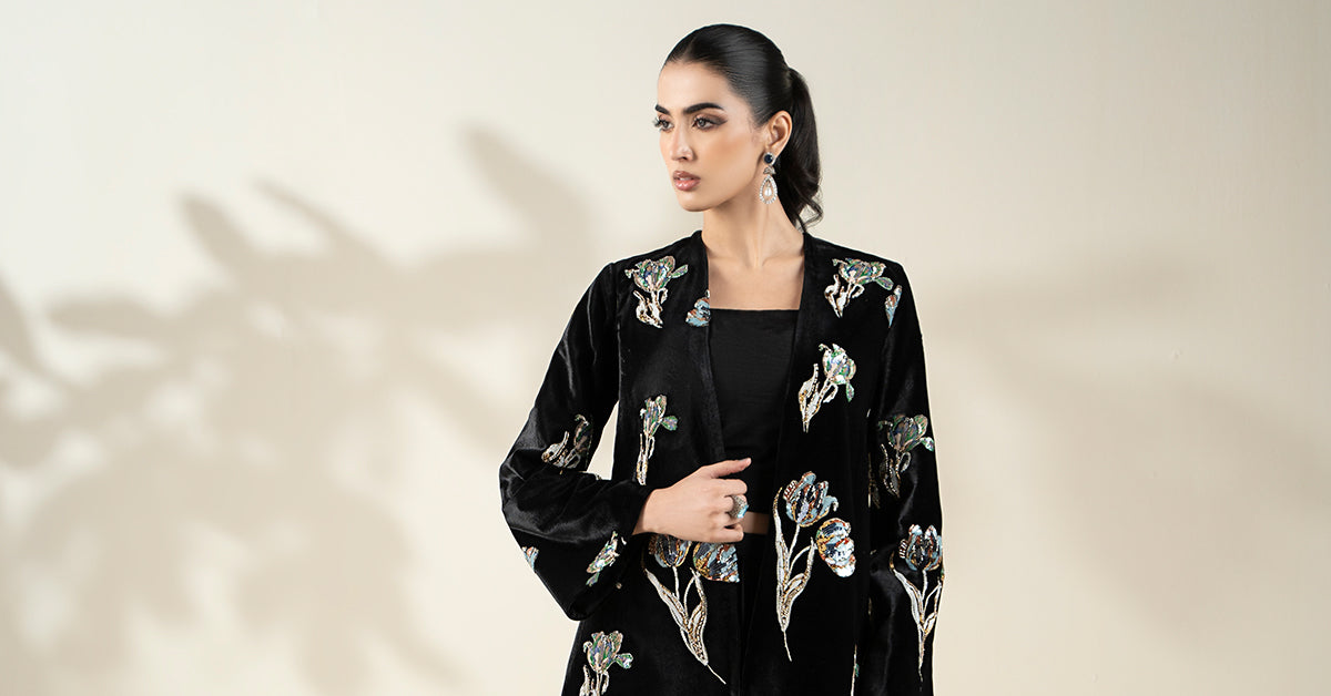 Embellished Velvet Fabric (1Pc) | LF-CH25-07