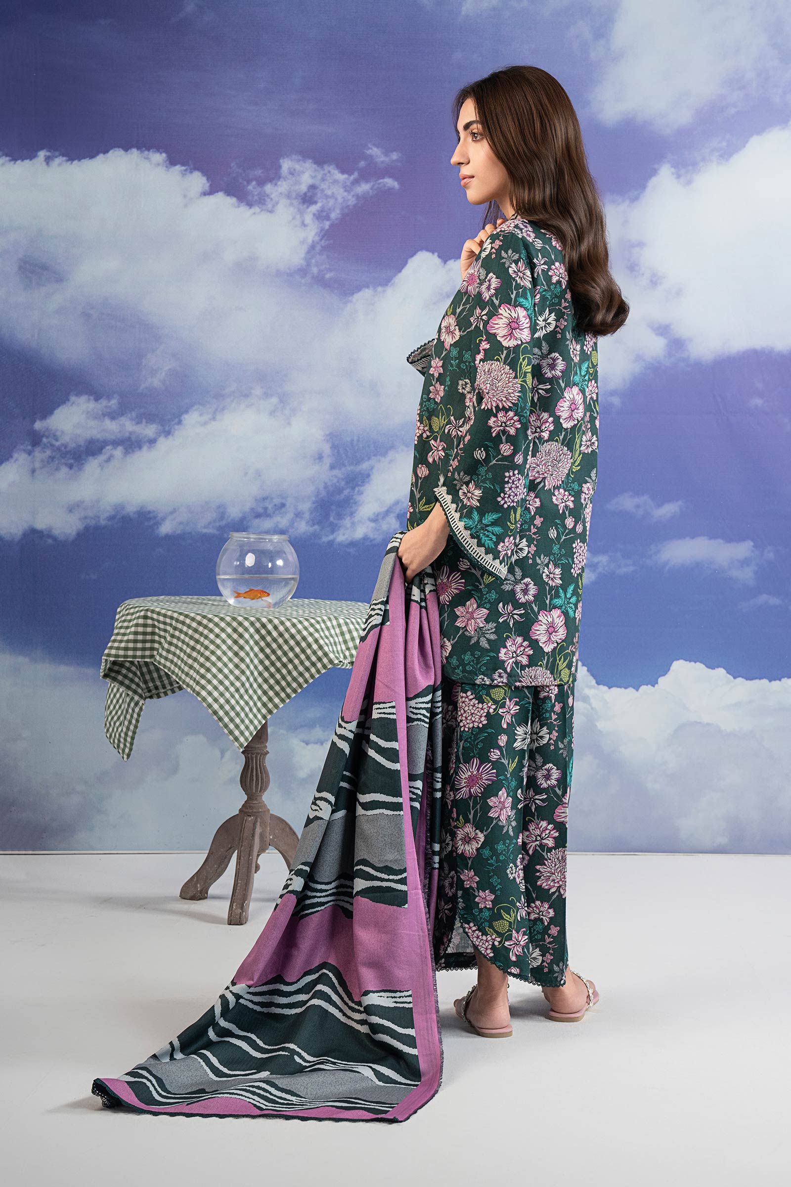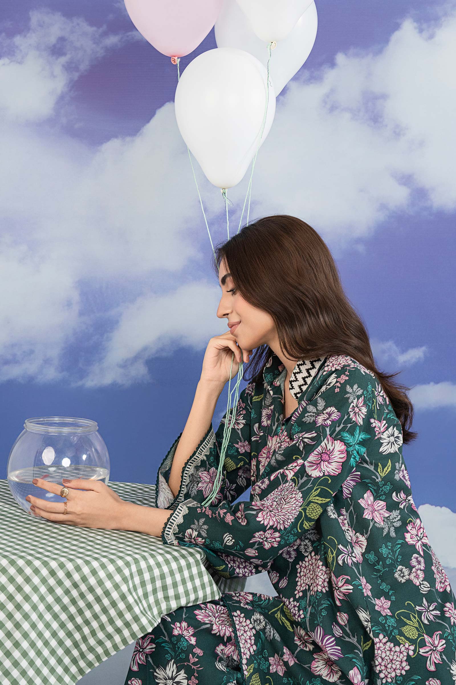 Printed Sleeves With Lace Detailing & Embroidered Border
