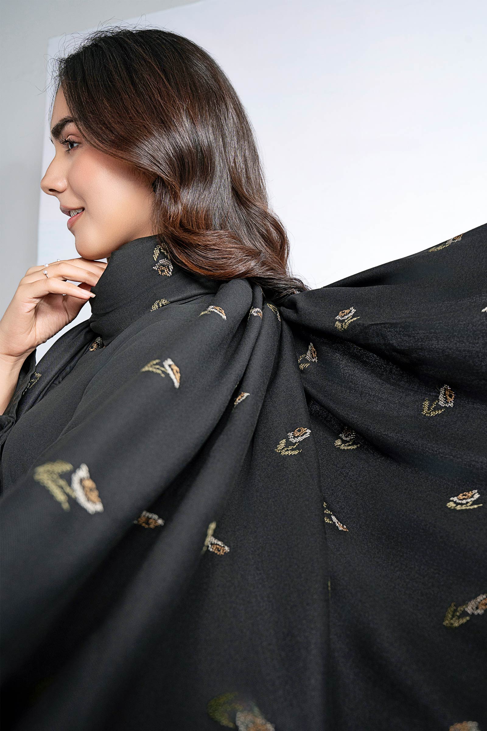 Embroidered Twill Shawl
