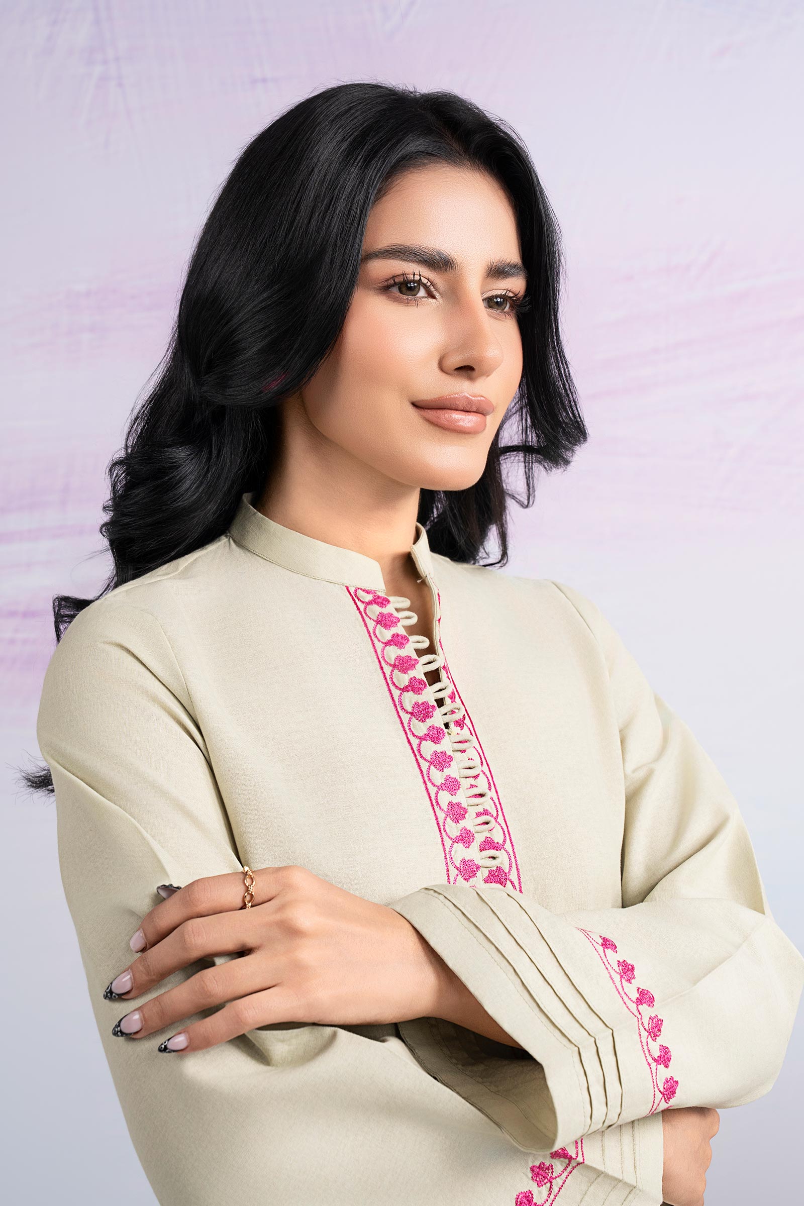 Straight Sleeves With Embroidered Border