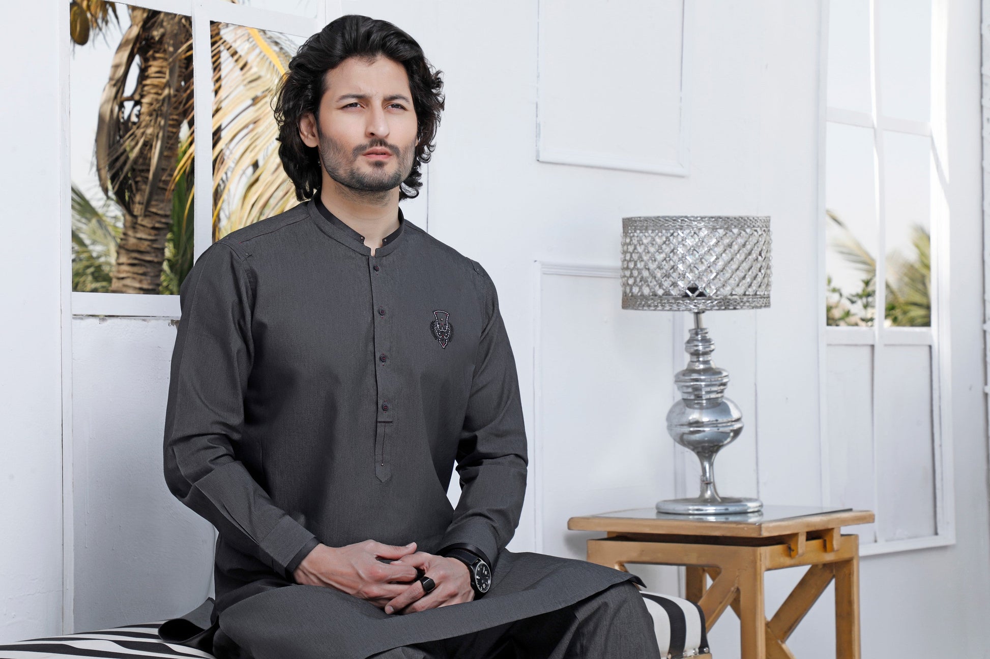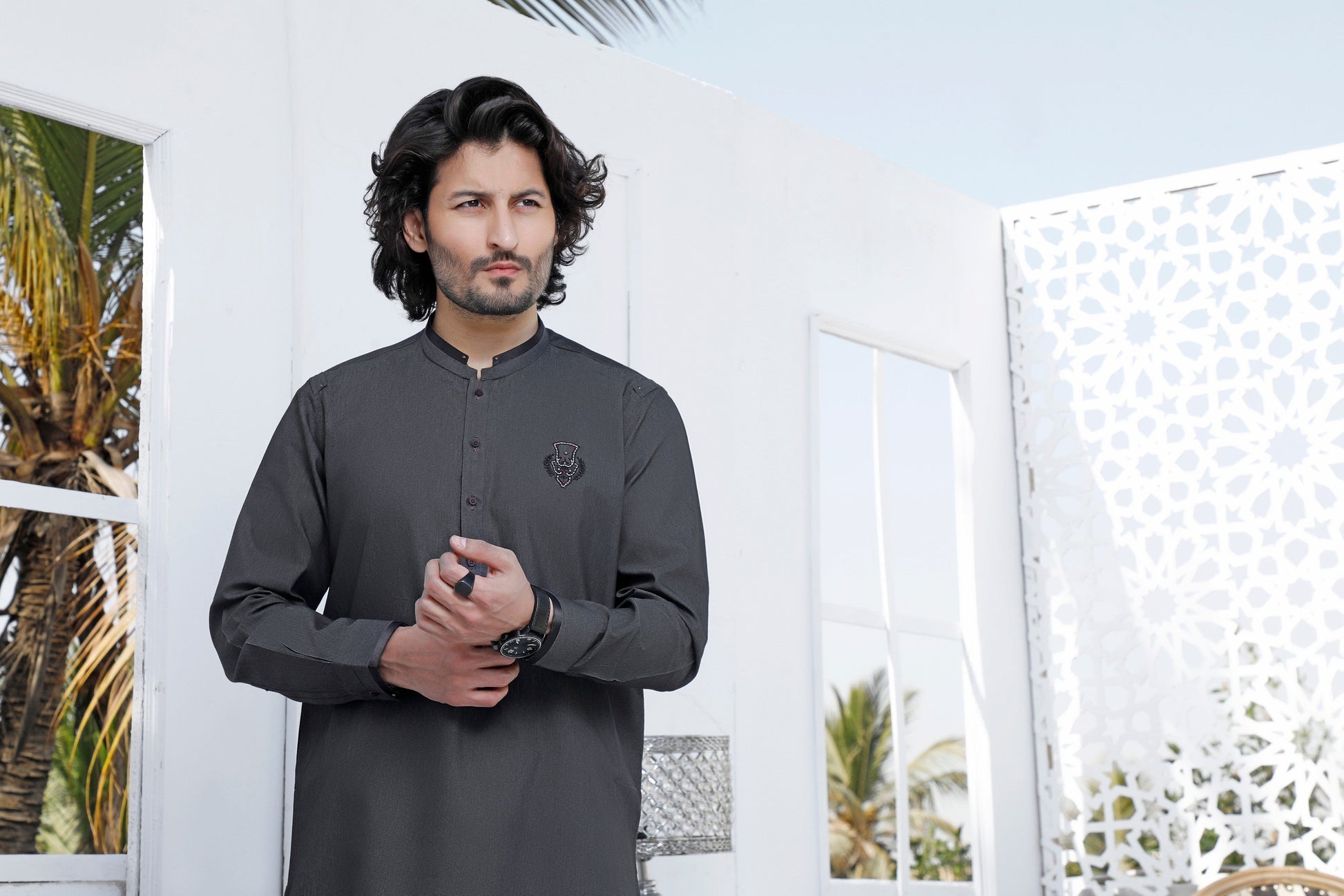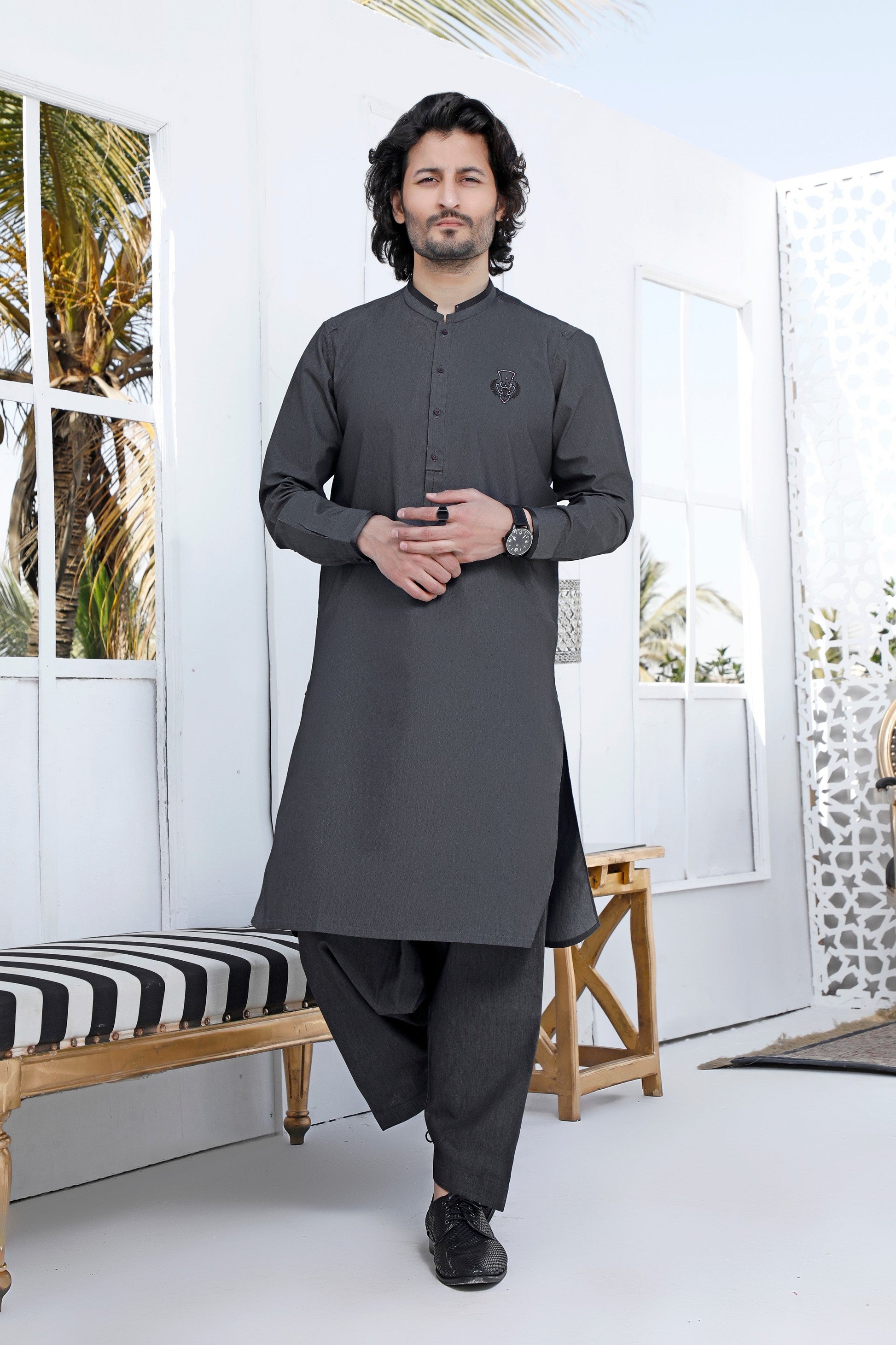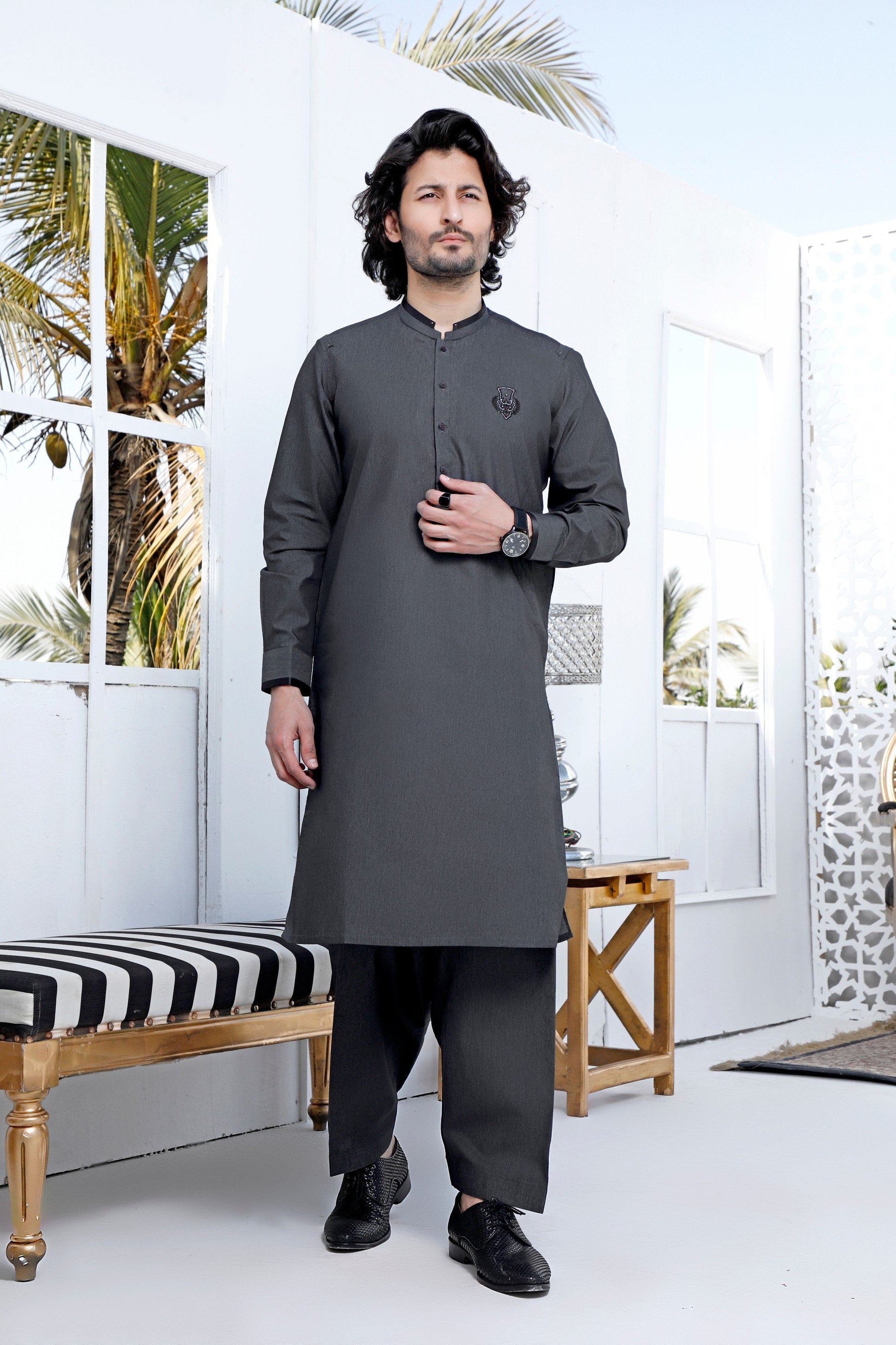 Men Formal Kurta Shalwar with embroidery on Collar, Front and Planket.