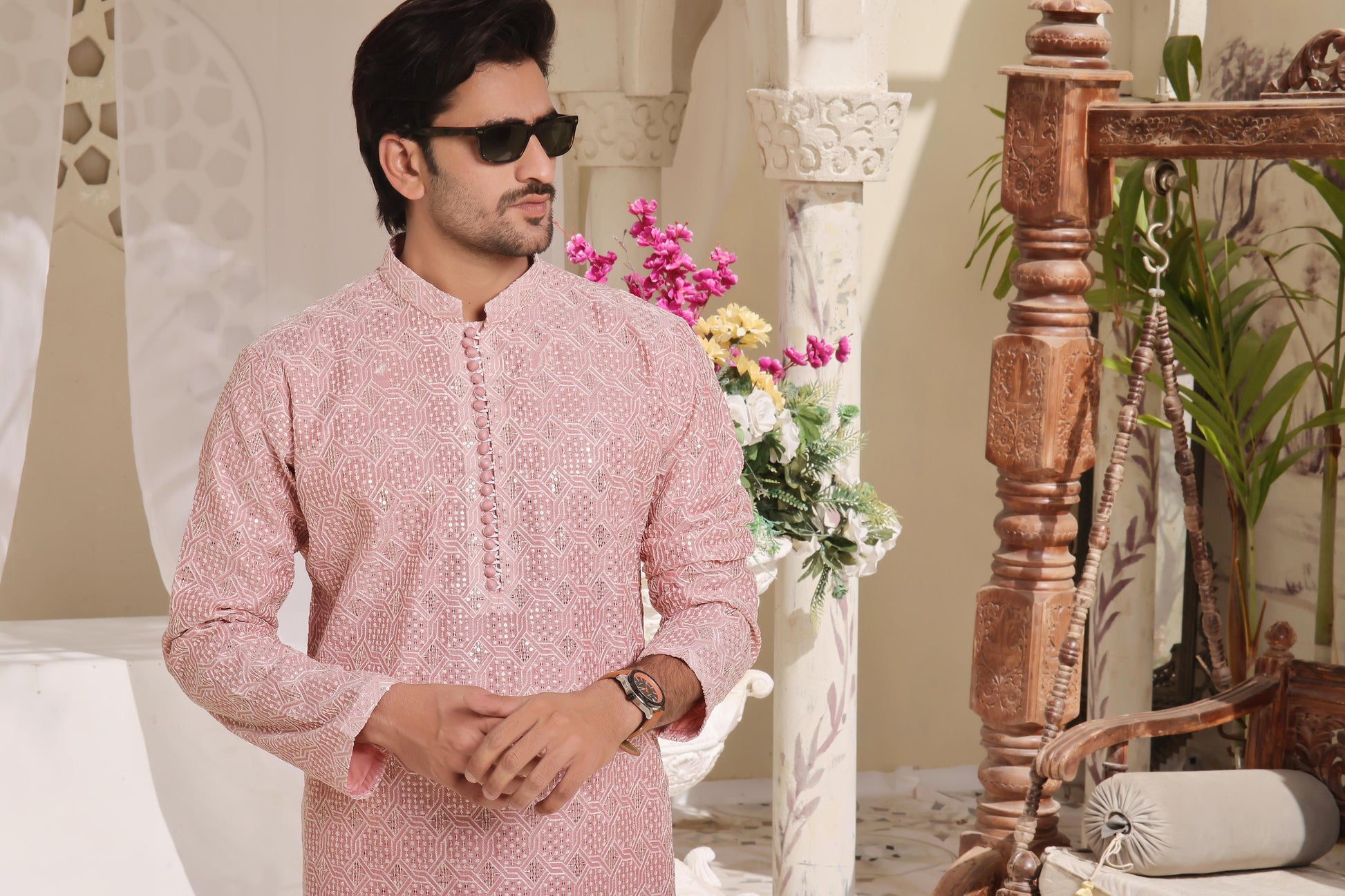 Men's Formal Sequence Embroidered Kurta Pyjama.