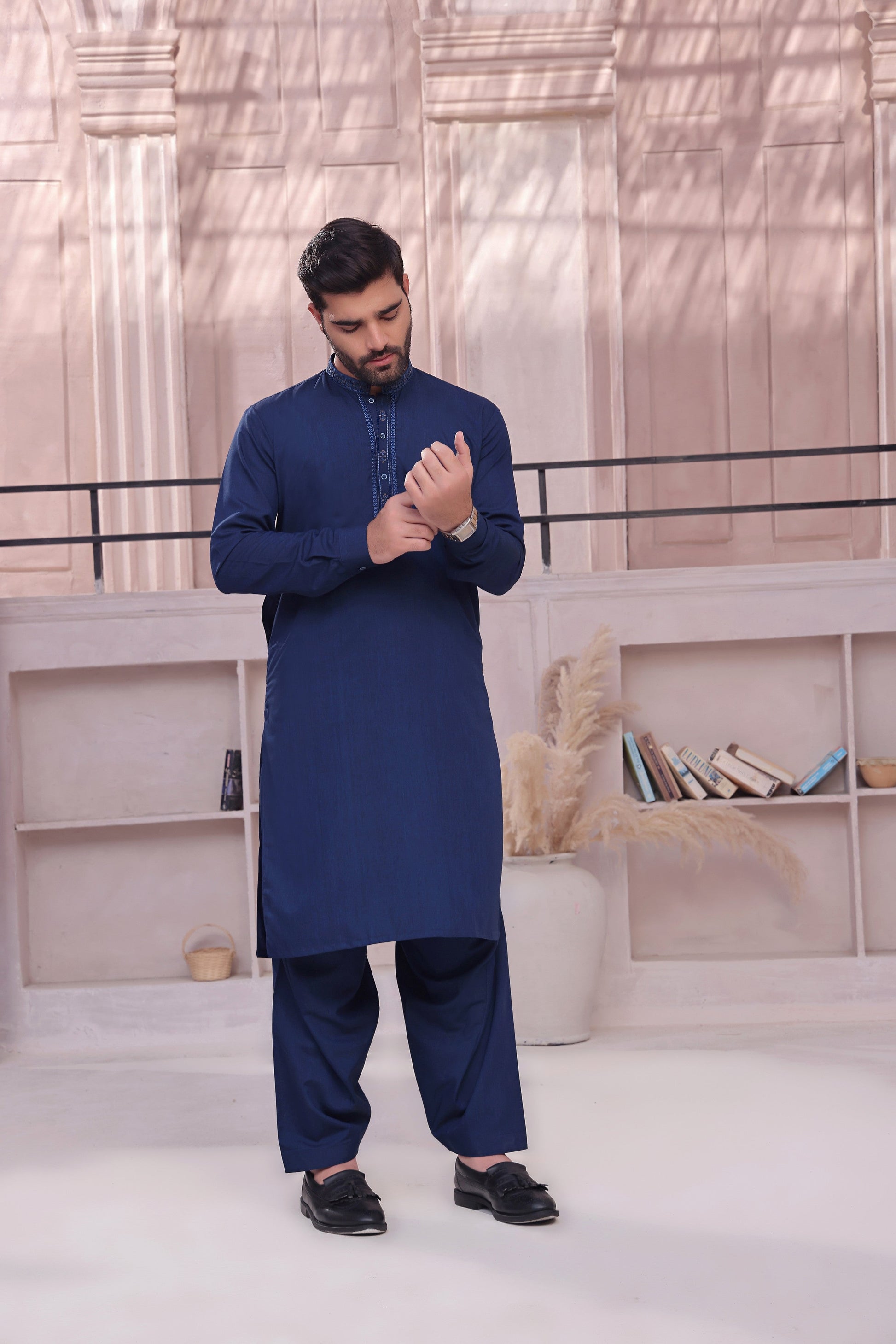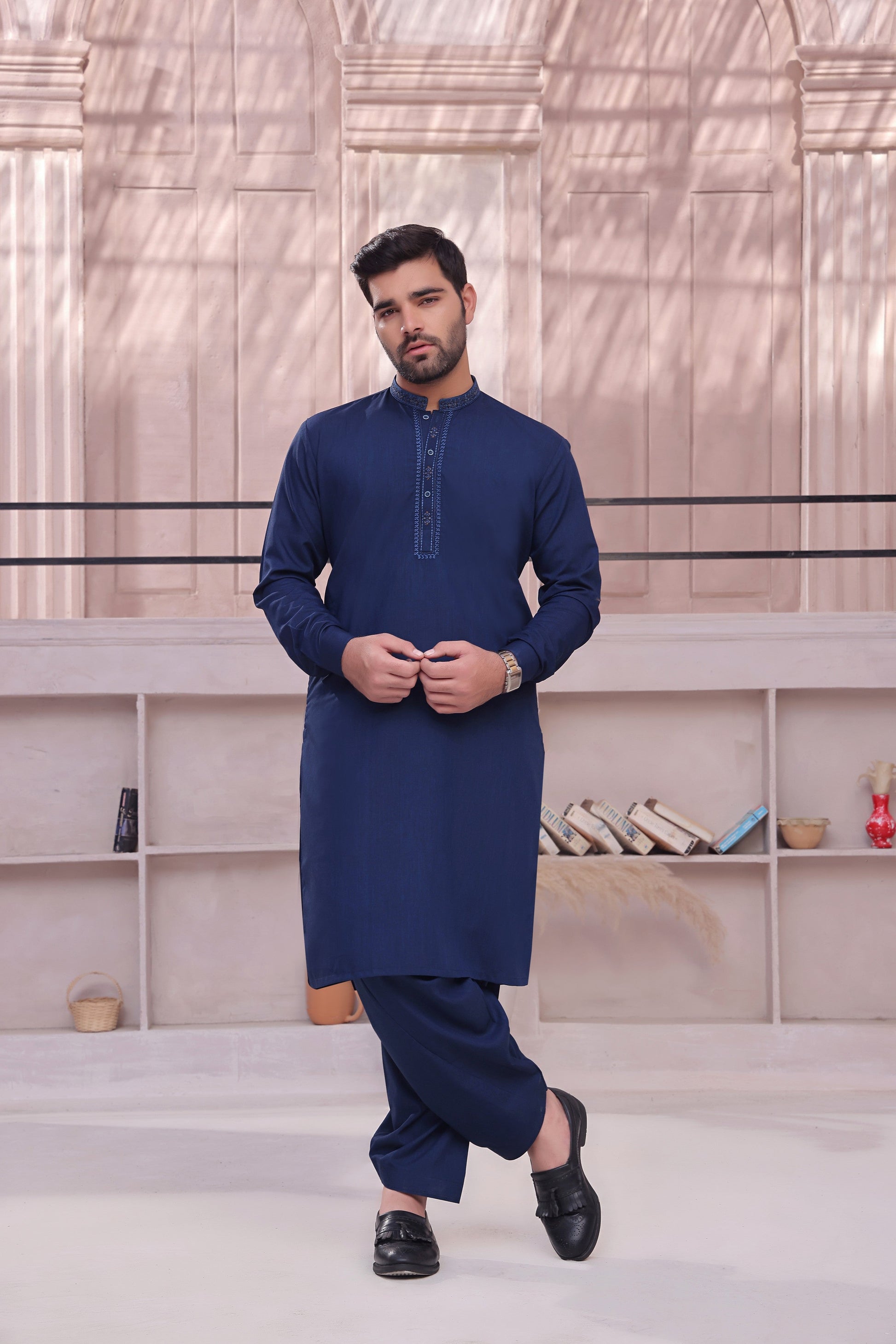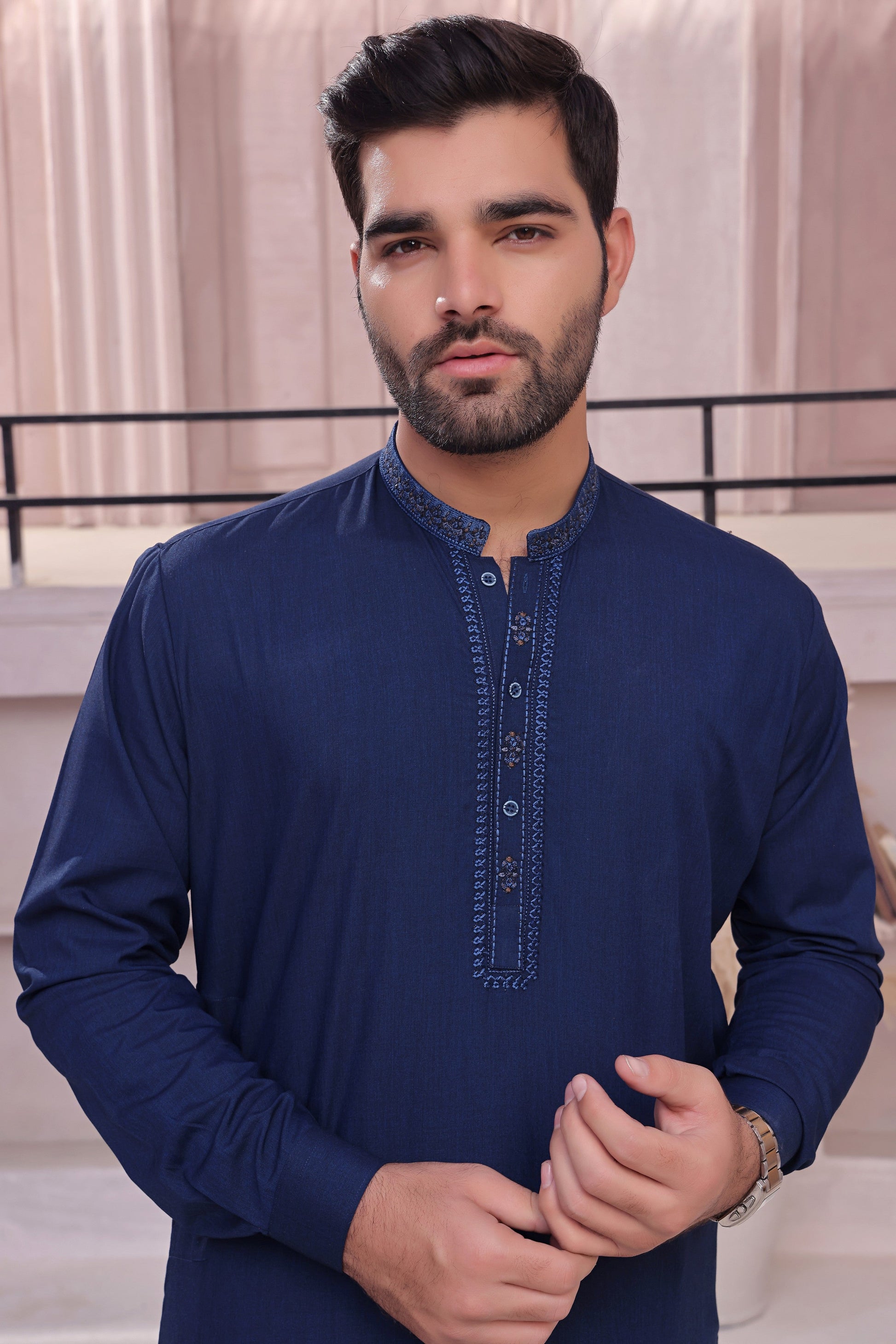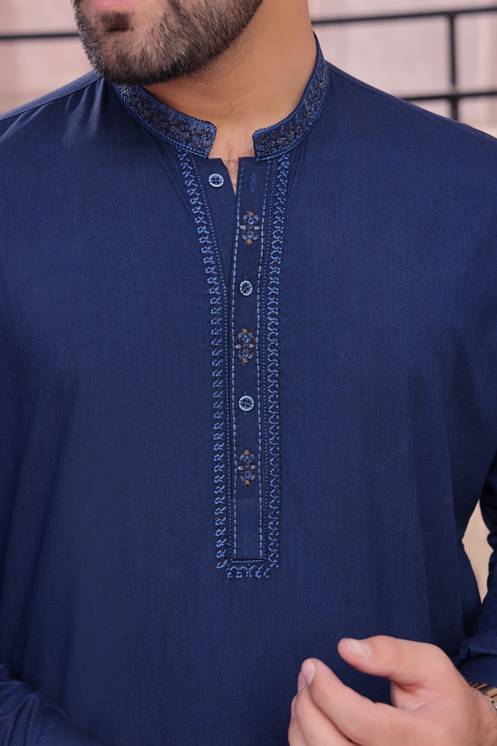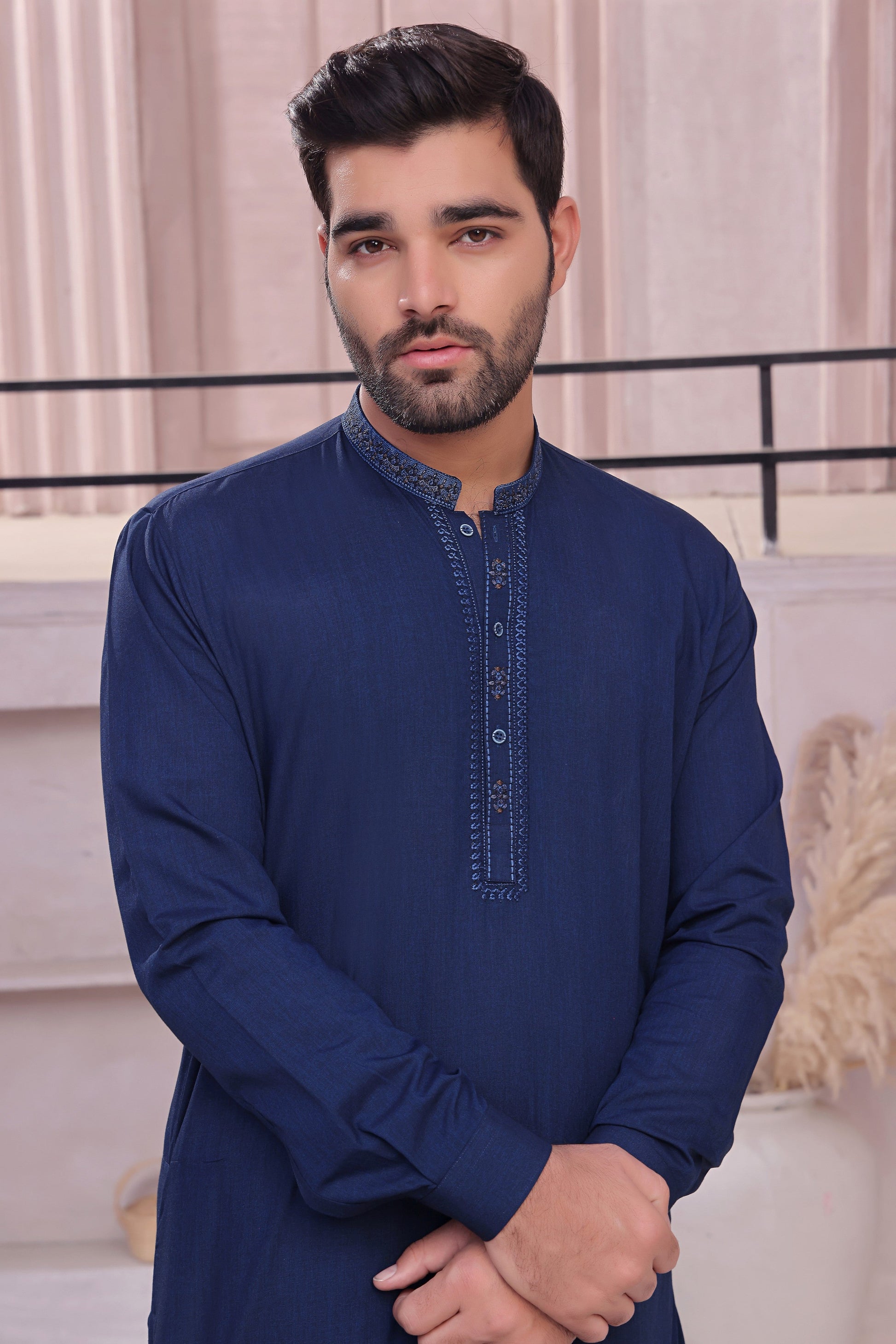 Men's Formal Kameez Shalwar with Embroidery on Planket and Front