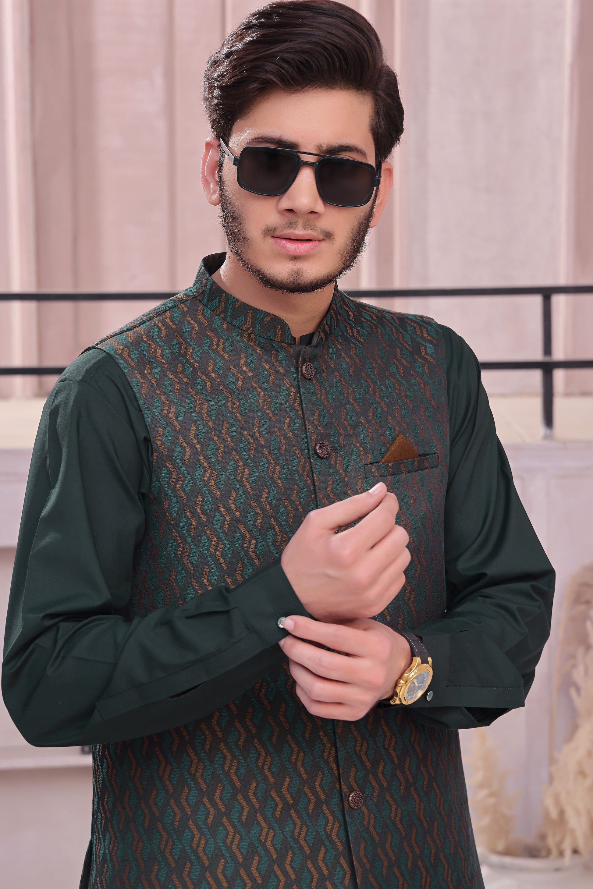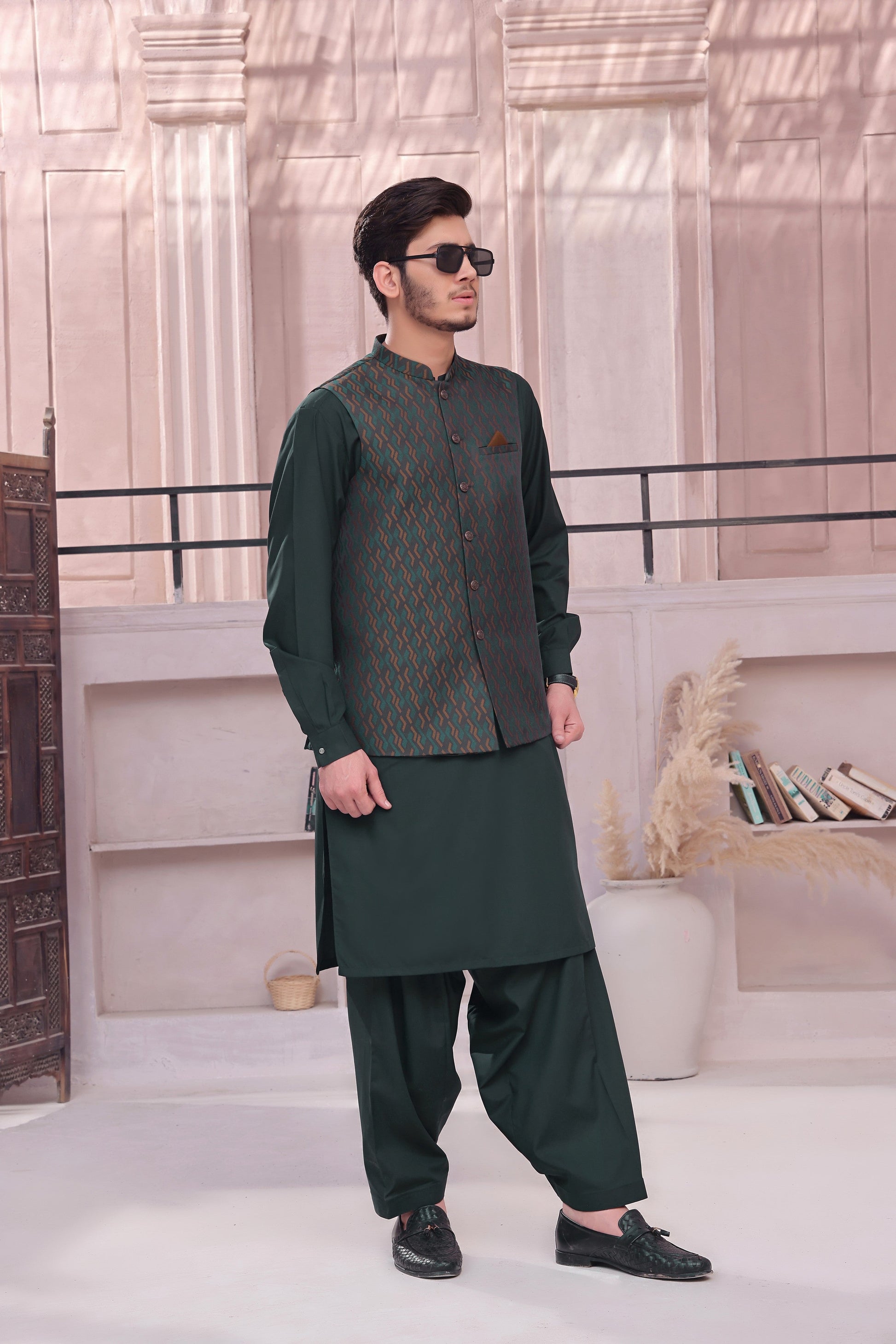 Men's Formal Jamawar Waistcoat with Blended Kameez Shalwar .