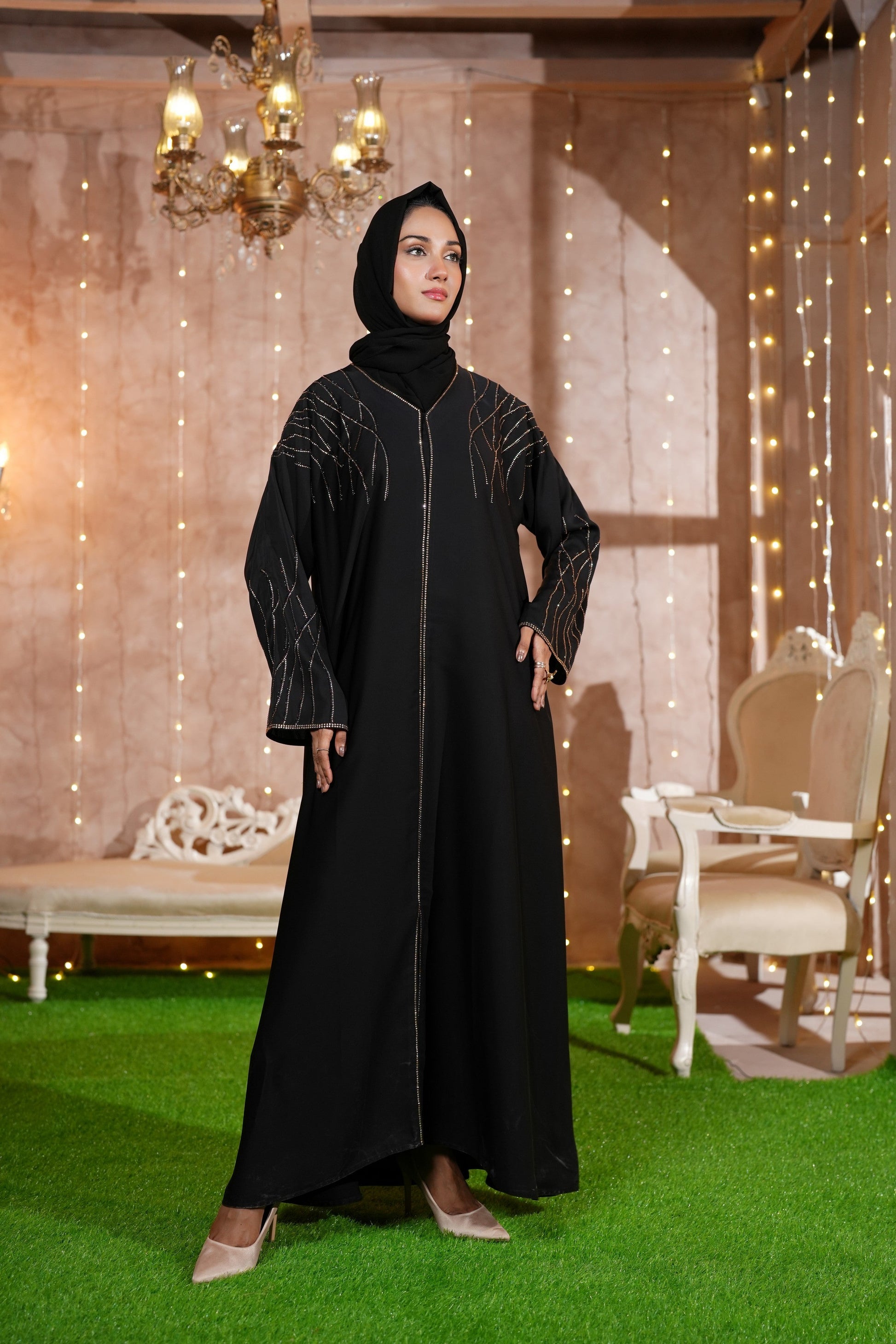 Intricate detailing ensures this abaya shines under lights—ideal for special evenings or festive gatherings.