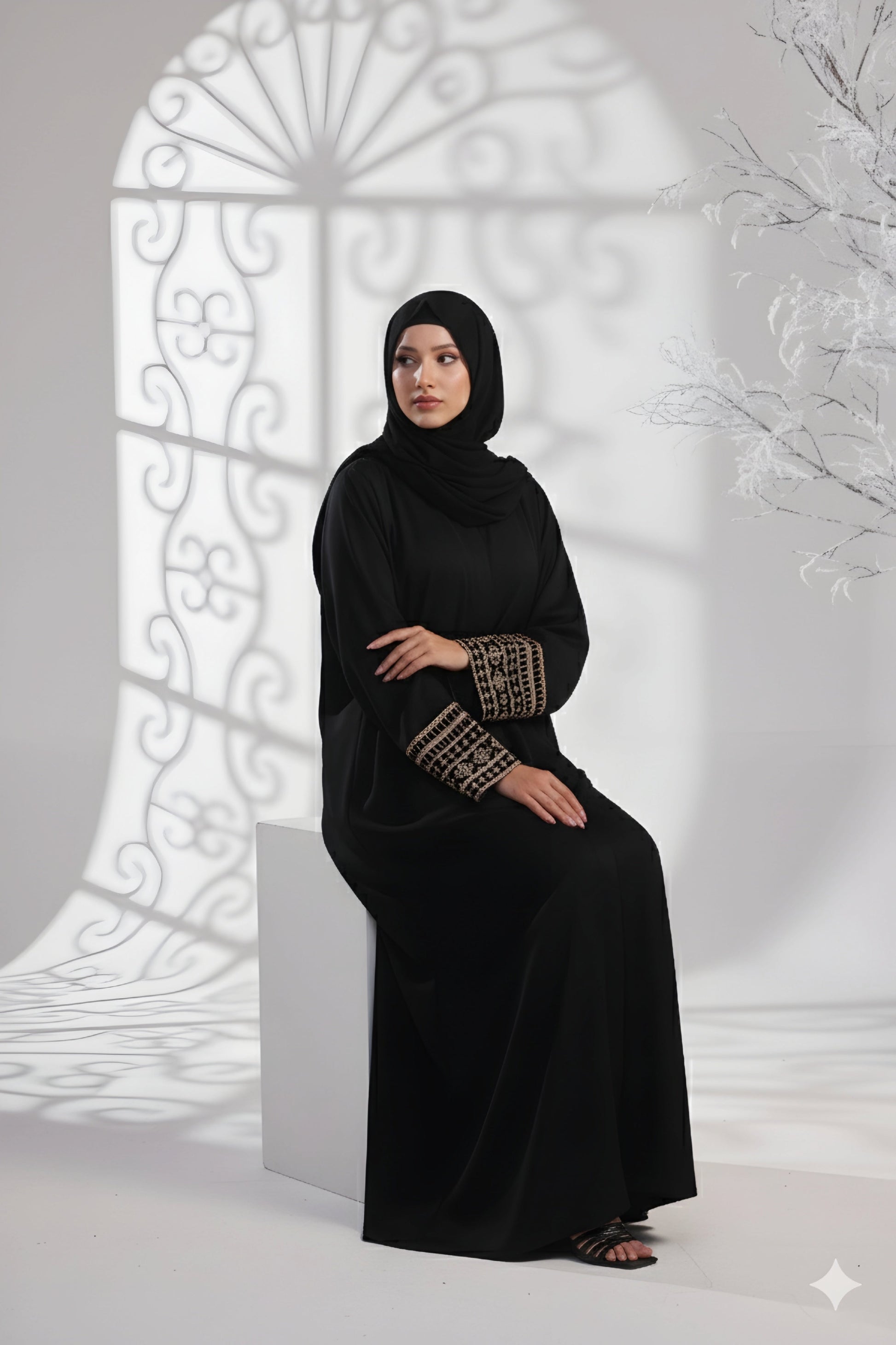- Black Color: A rich and elegant shade that enhances the regal appeal of this abaya.