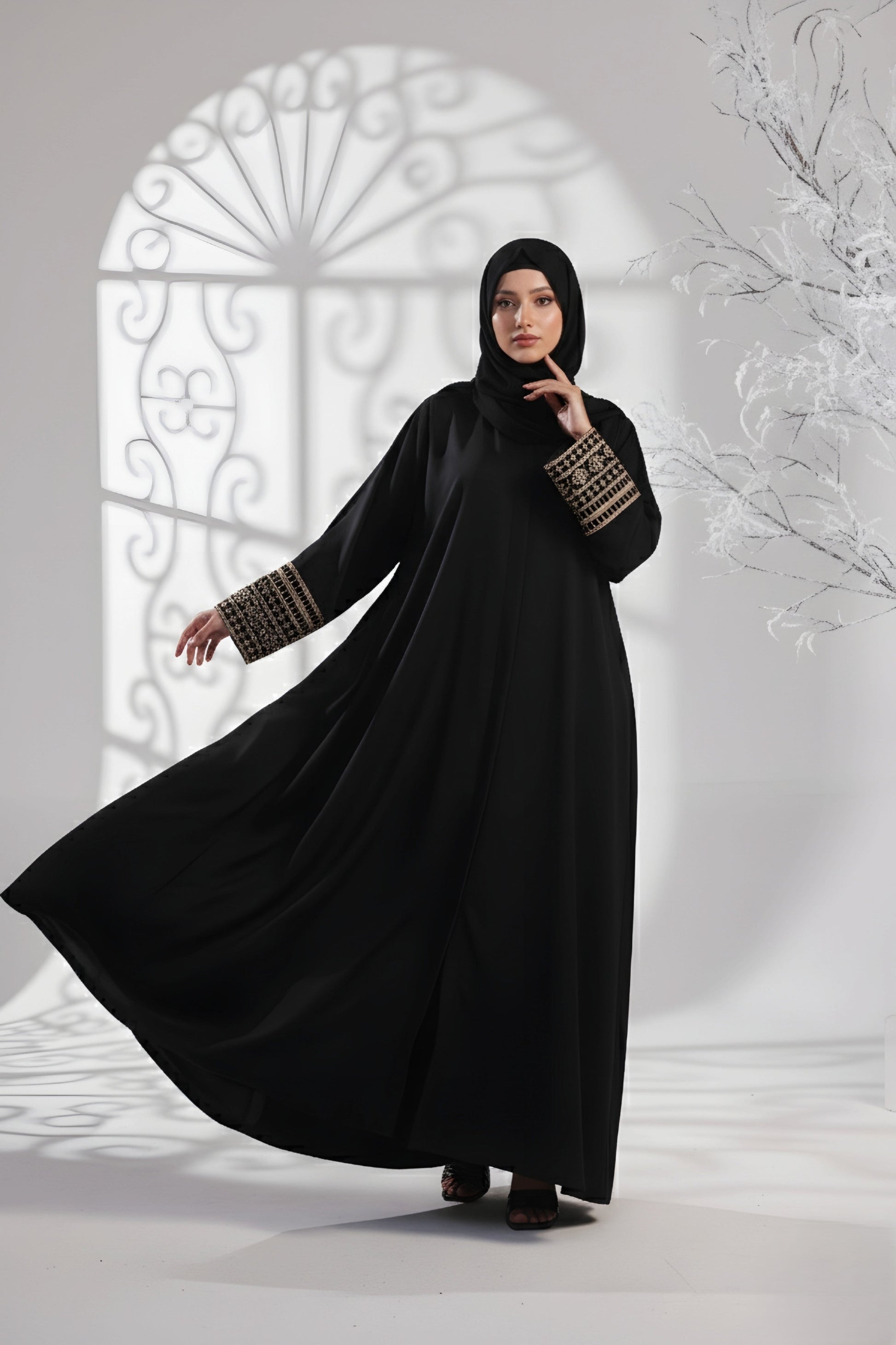 - Exquisite Detailing: The black embroidery elevates the abaya’s elegance, making it perfect for special occasions.