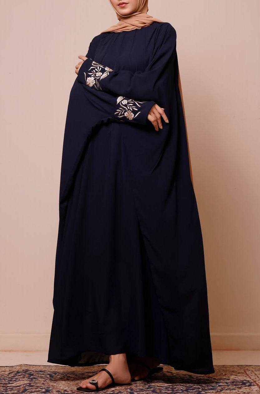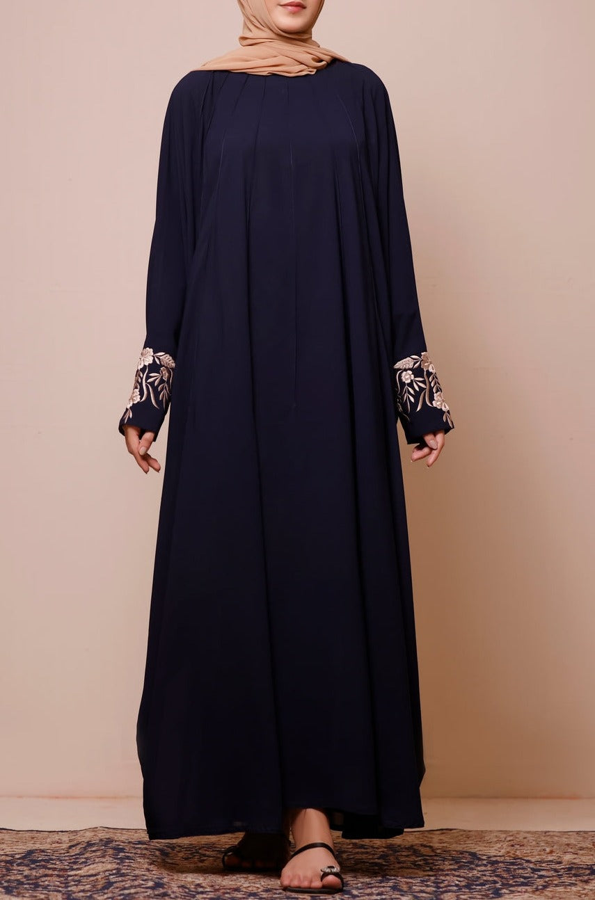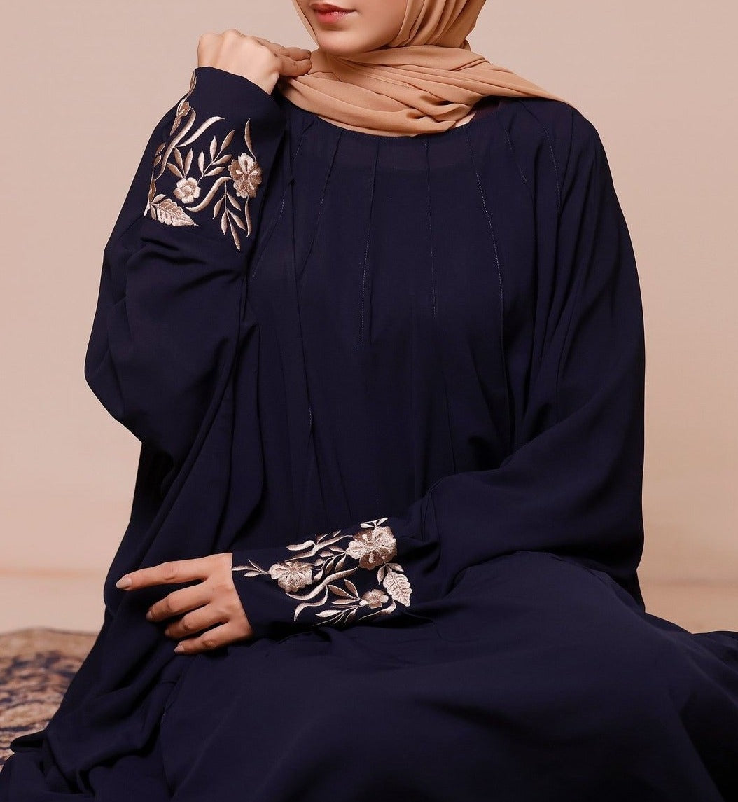 Our beautiful style abaya is best for all day everyday wear , nidha fabric which is soft and breathable premium Dubai fabric having embroidery on sleeves, sober and elegant design which is best to carry and comes along with chiffon Sheila