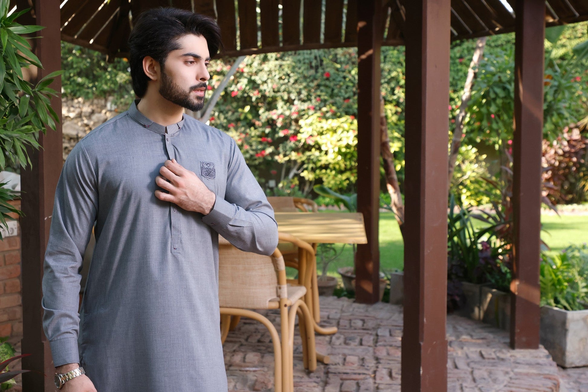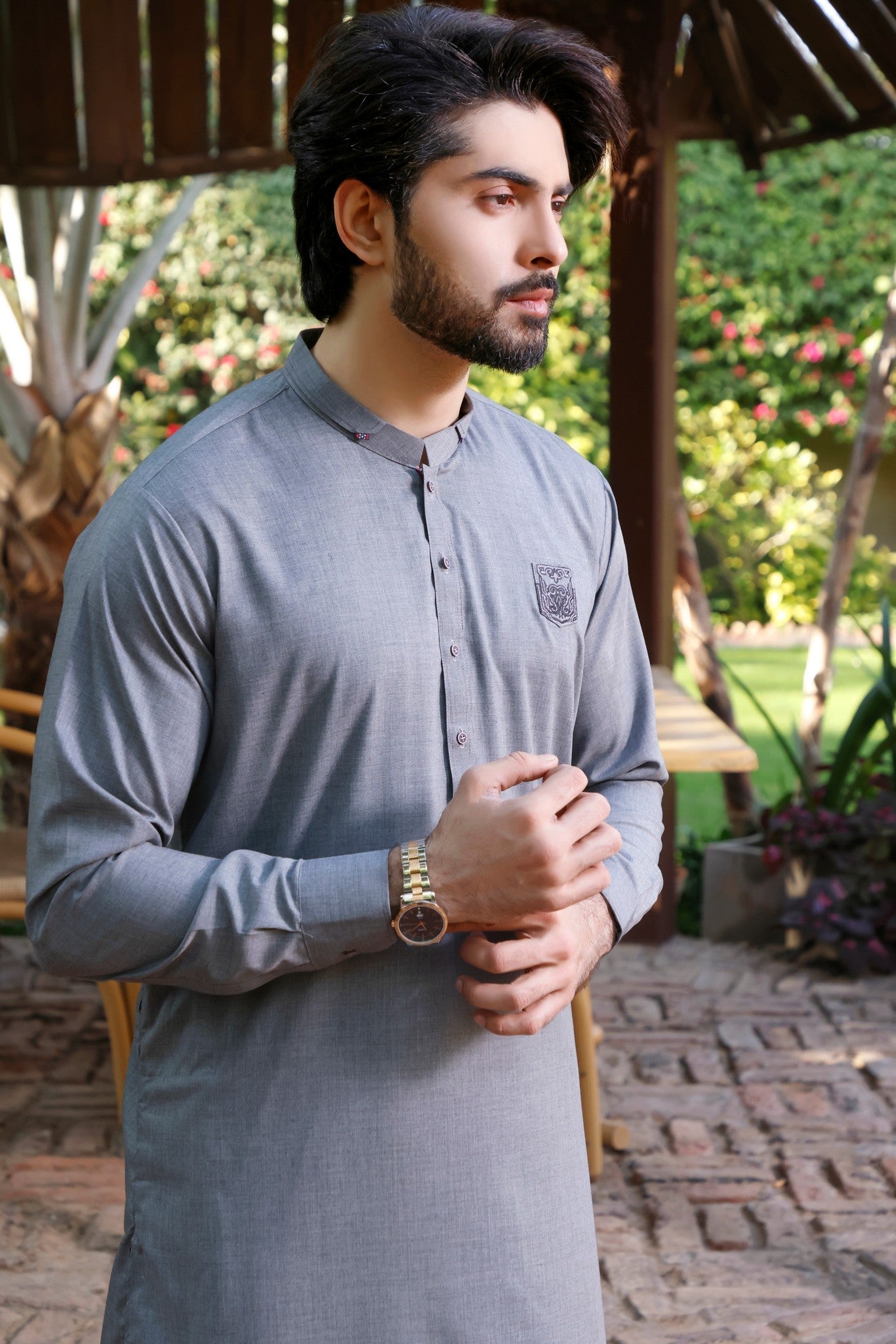 Men's Formal Designer Kameez Shalwar with Motive on Front