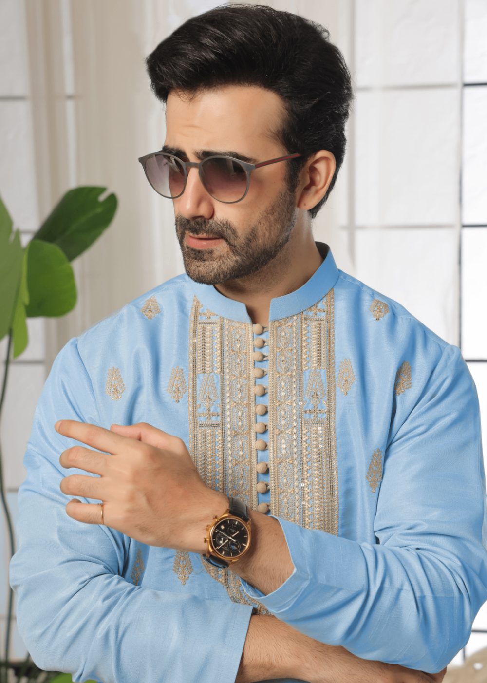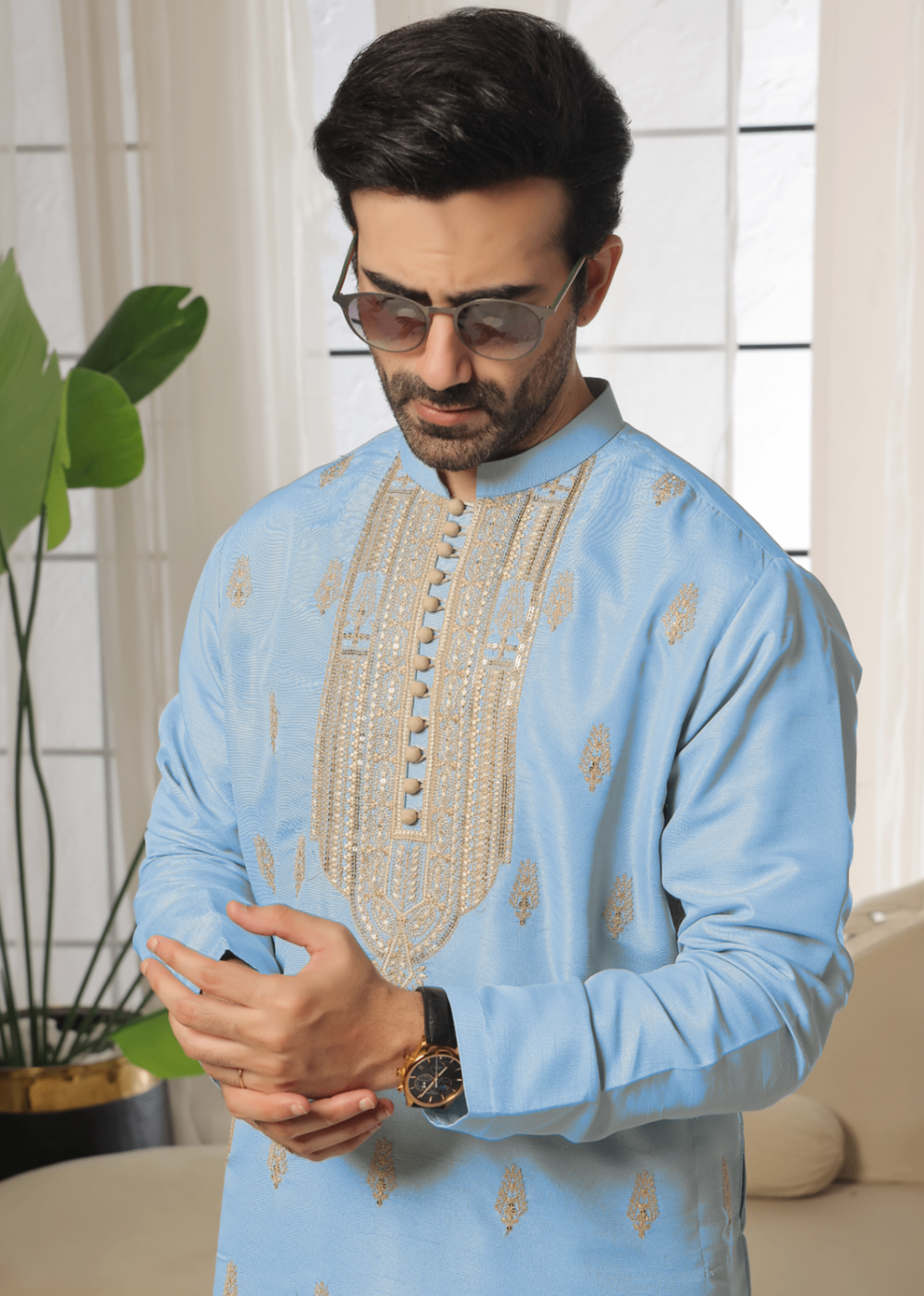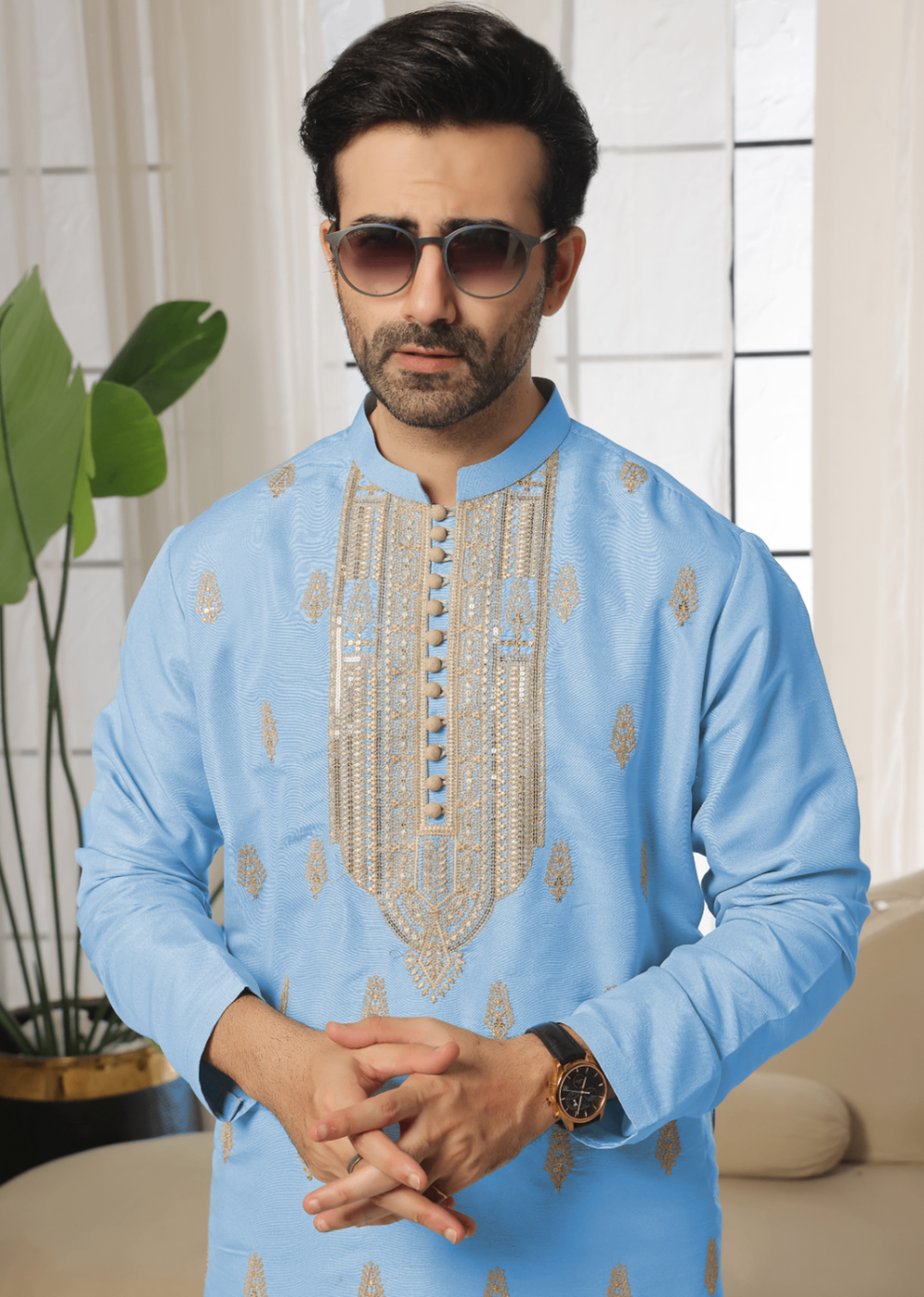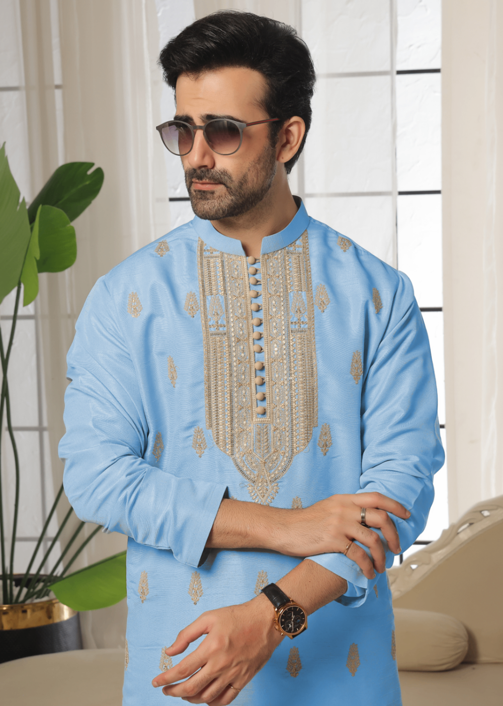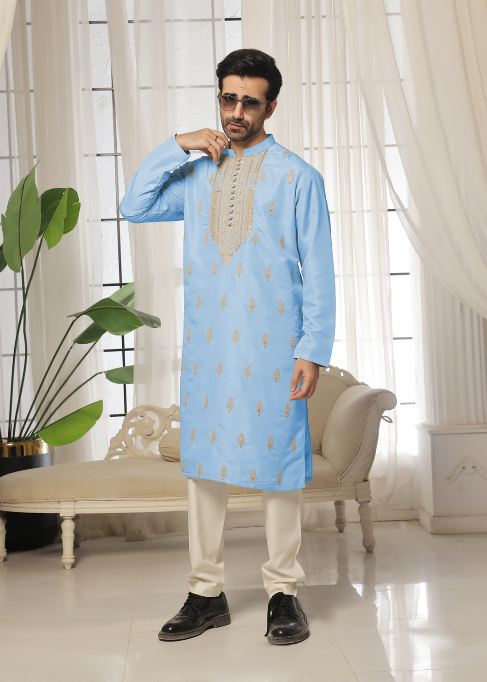 Men's Formal Raw Silk Kurta with Off White Pyjama