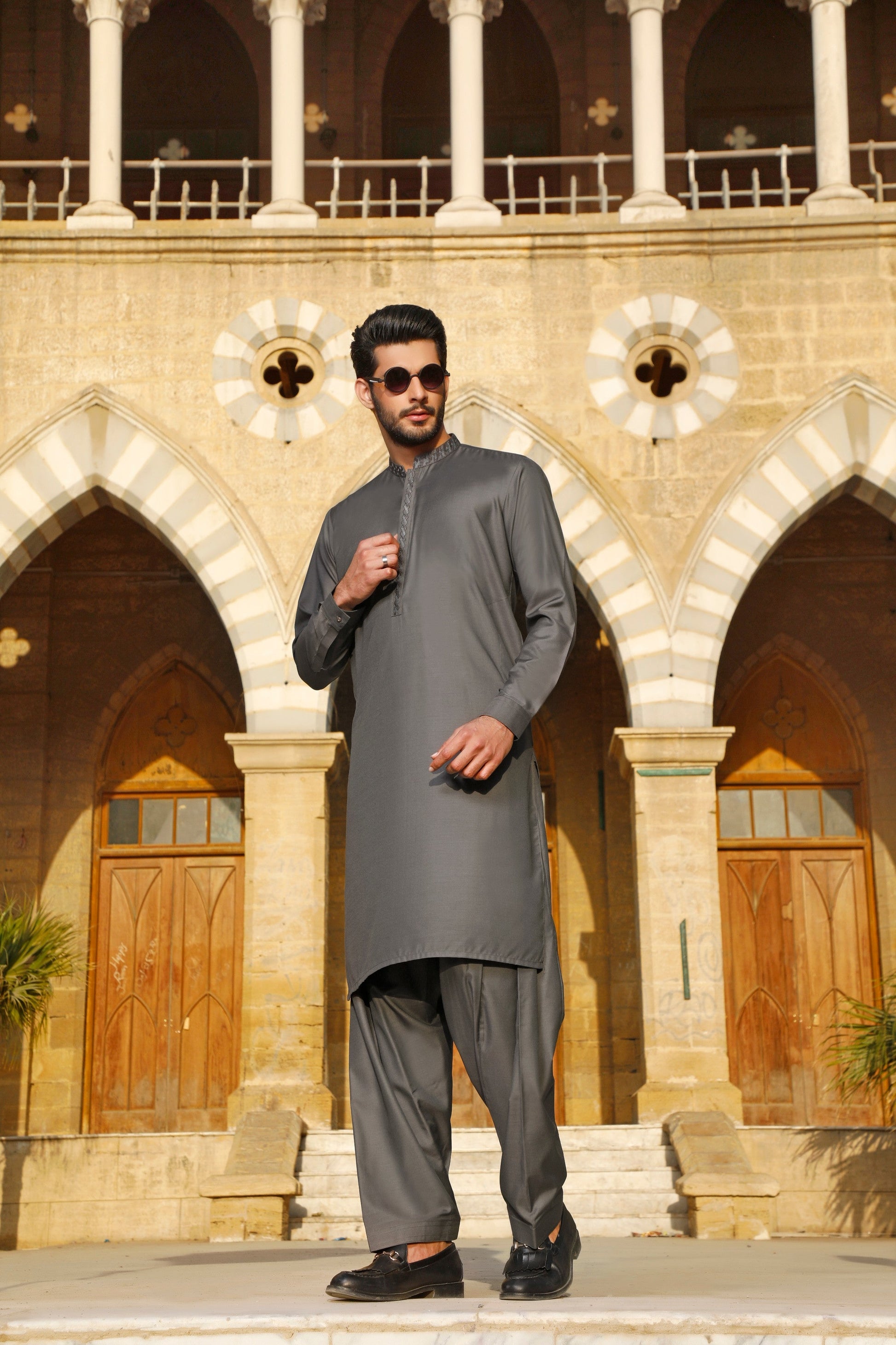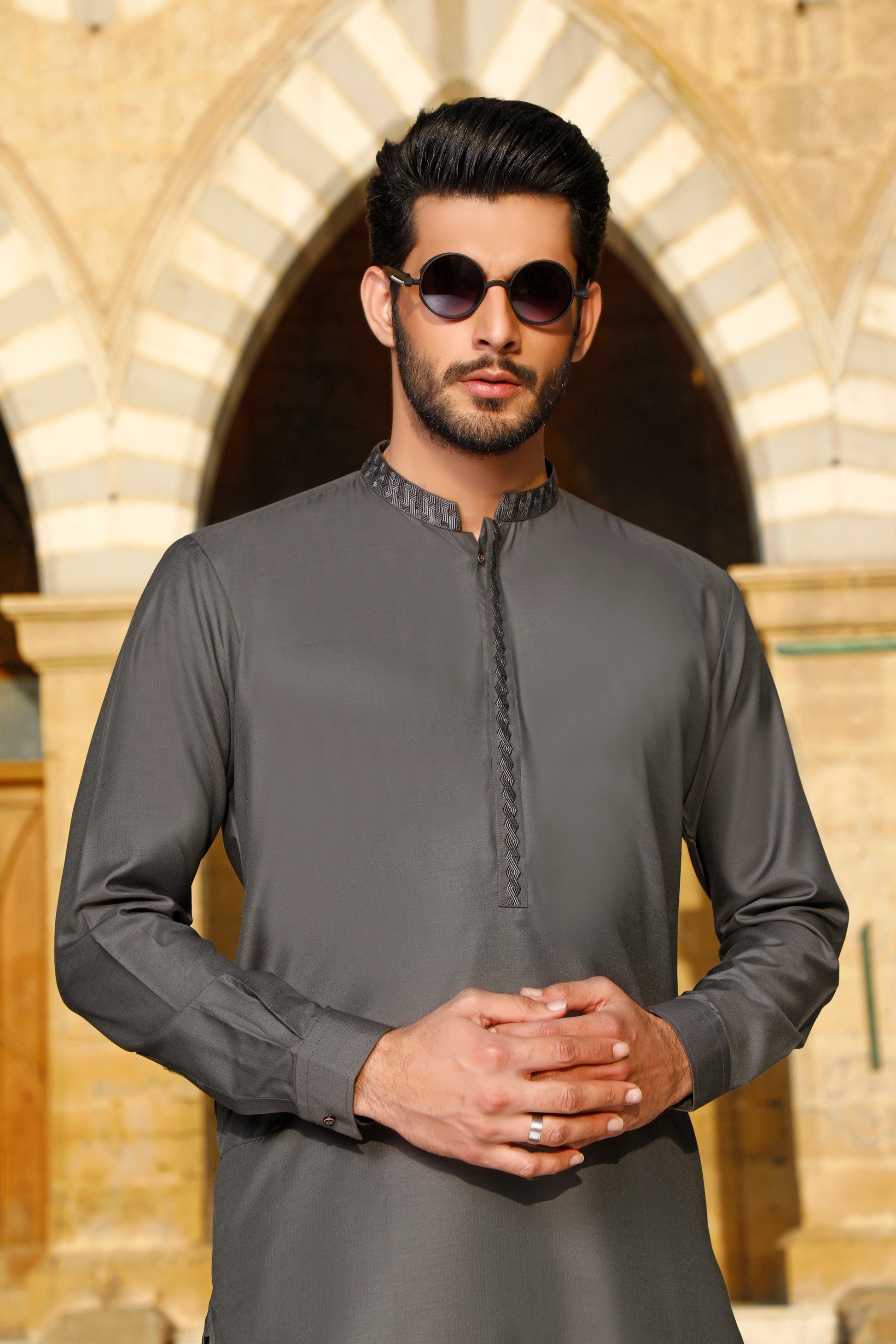Men's Formal Suit with Embroidery on Collar & Planket