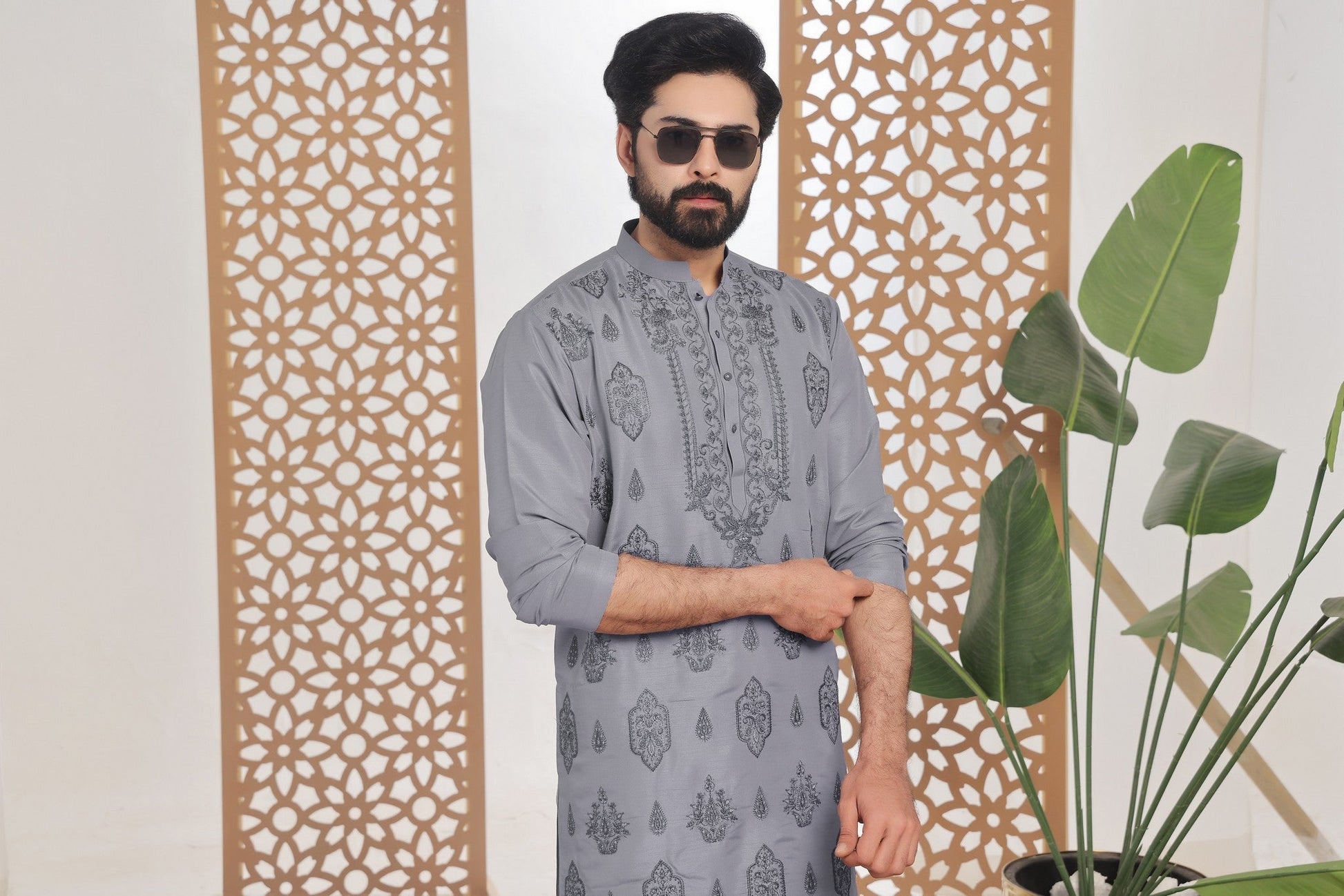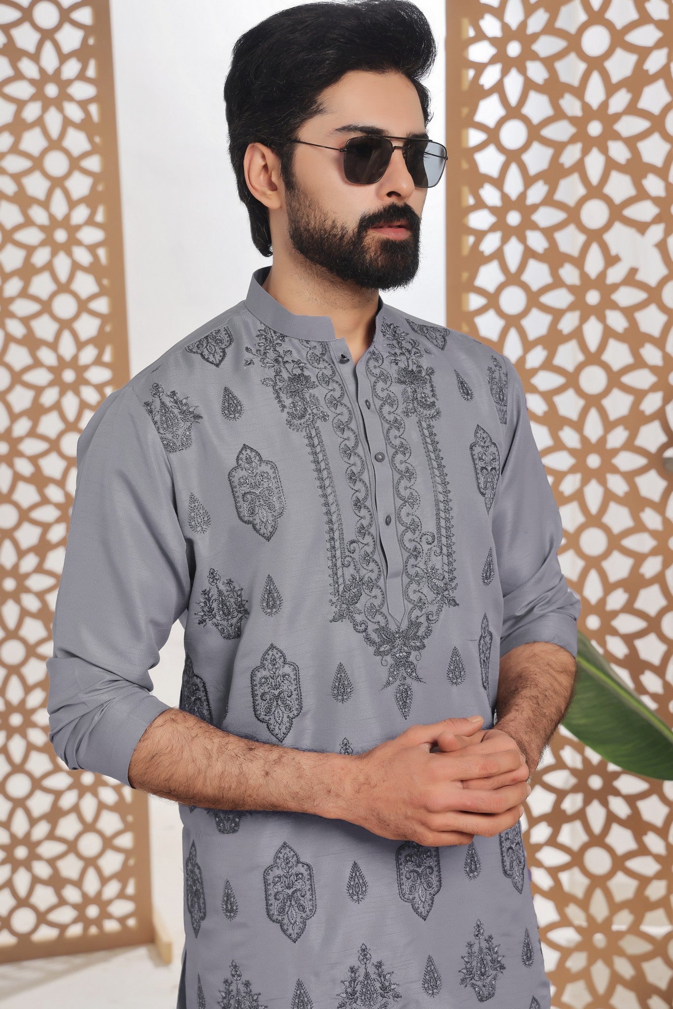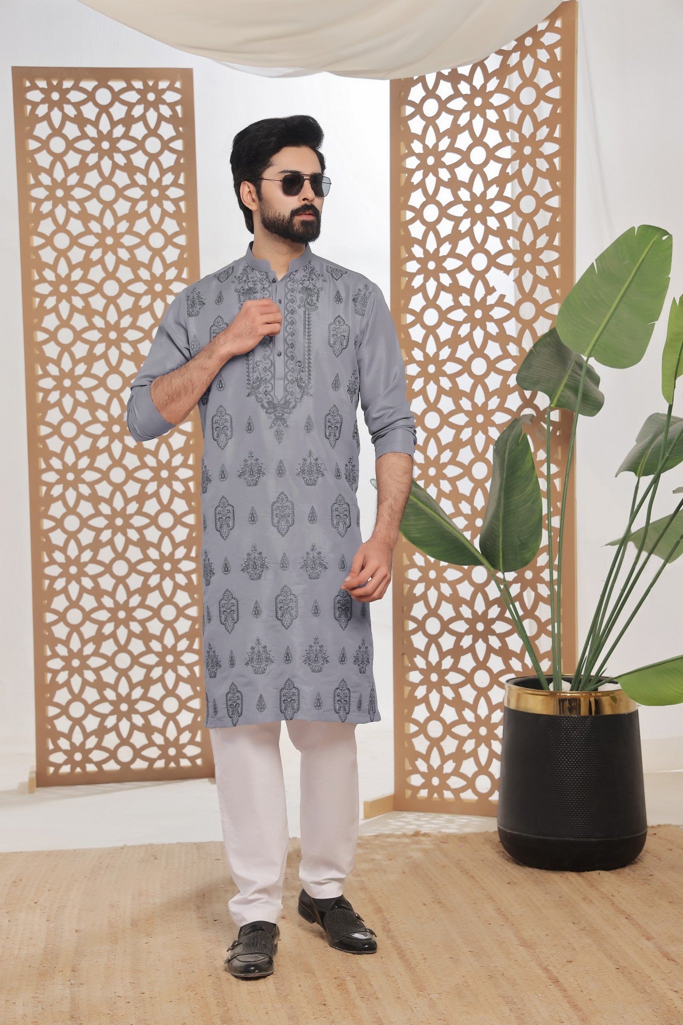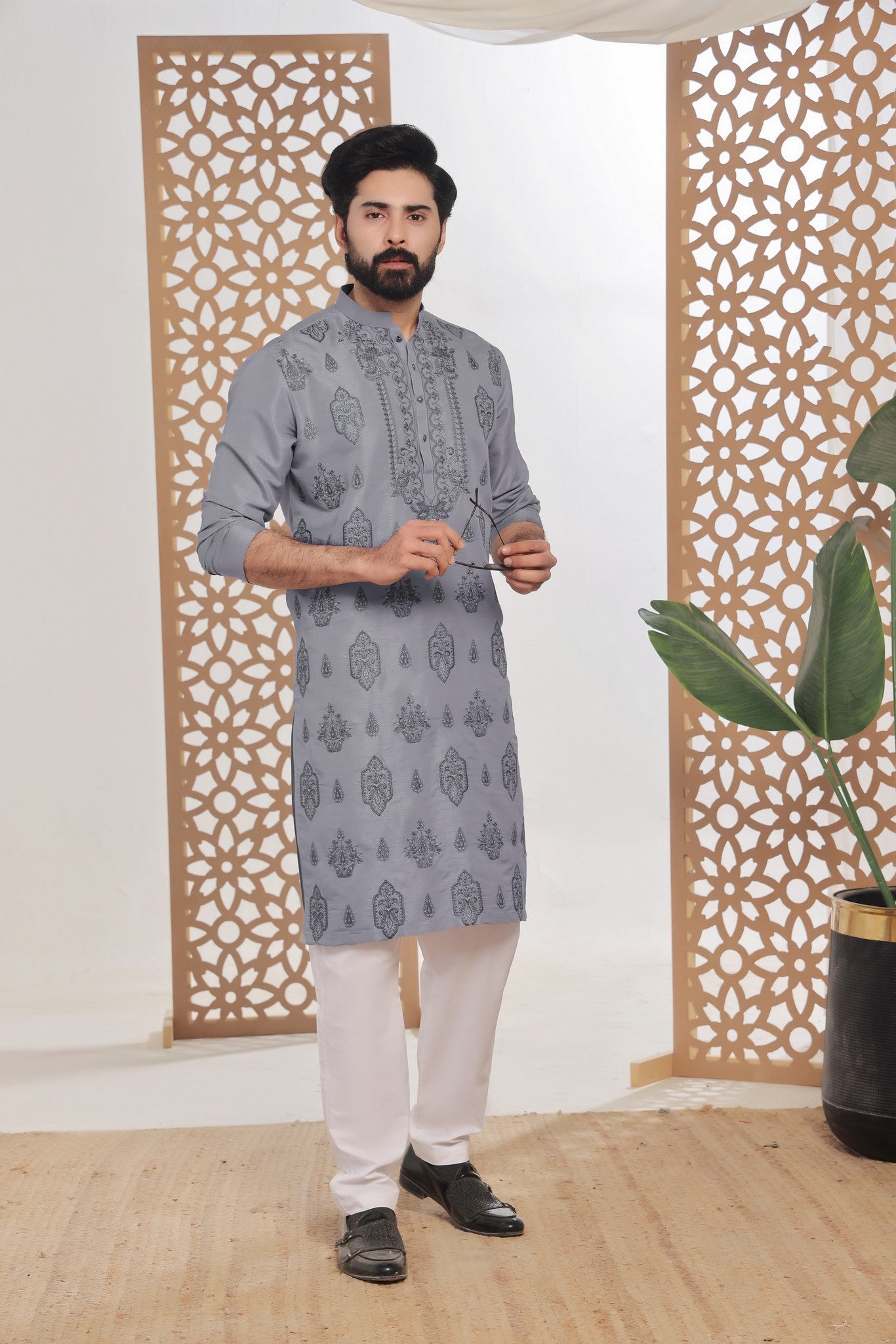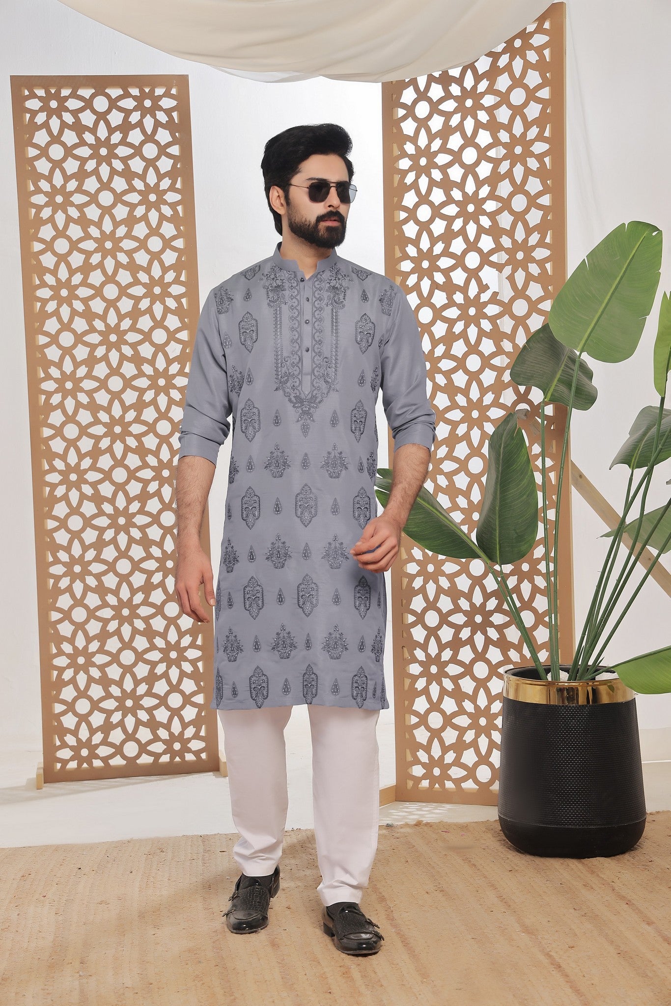 Men's Formal Raw Silk Kurta with Off White Pyjama