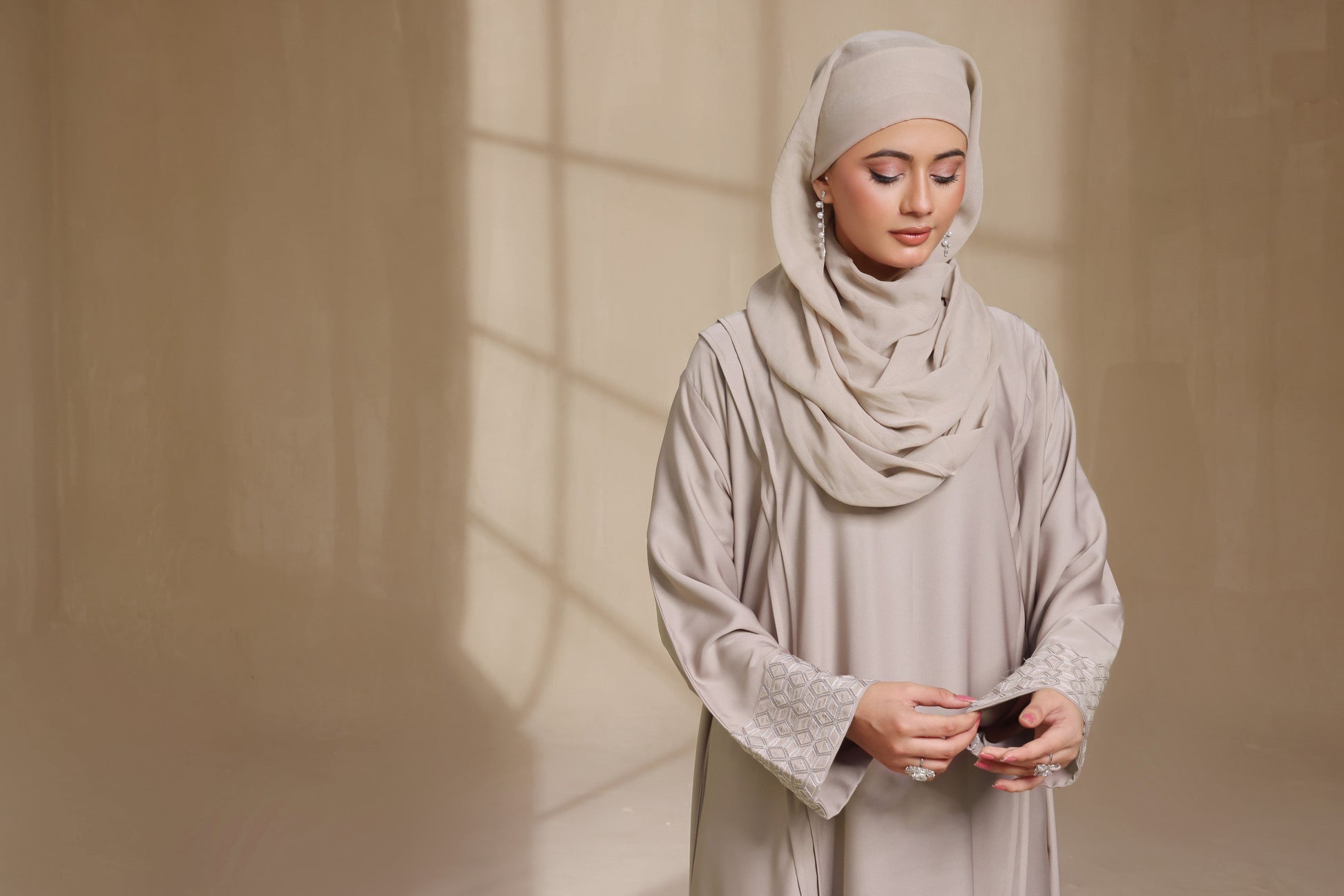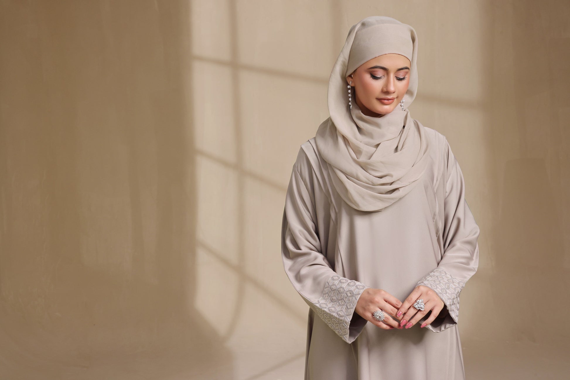 Matching Hijab Included: Complete the look with a coordinating chiffon hijab for an effortlessly polished appearance.