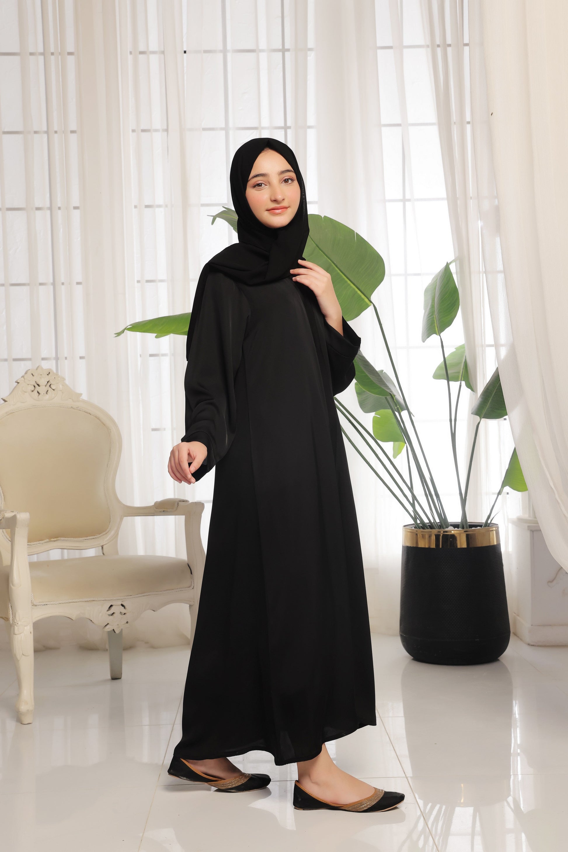 This is a must for your wardrobe collection with our new latest colors which is breathtaking and ultimately gorgeous which is our hot sellers these days front open style abaya and loose pattern sleeves come along with pure Korean chiffon Sheila