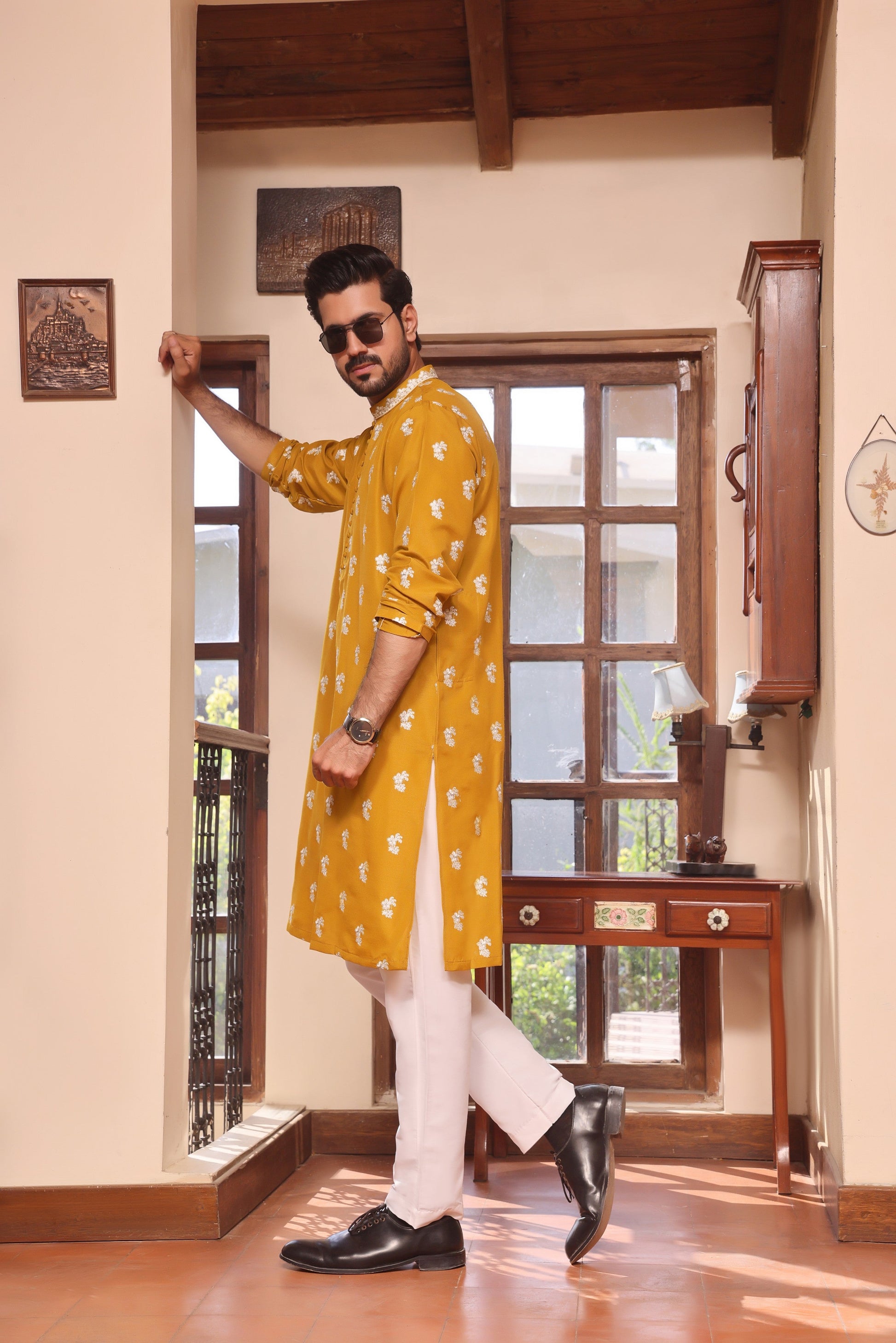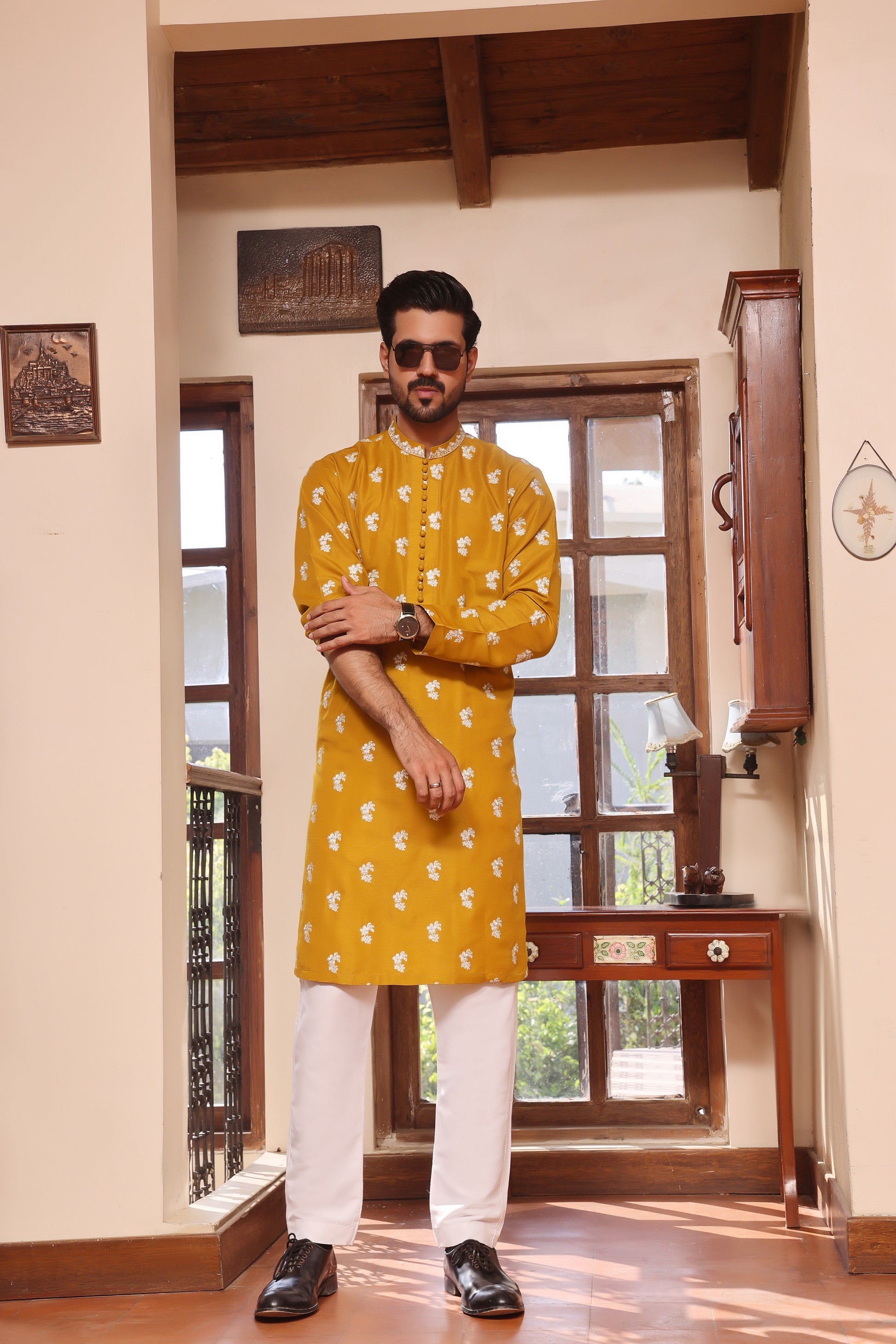 Men's Formal Kurta with Computer Embroidery along with Off White Pyjama