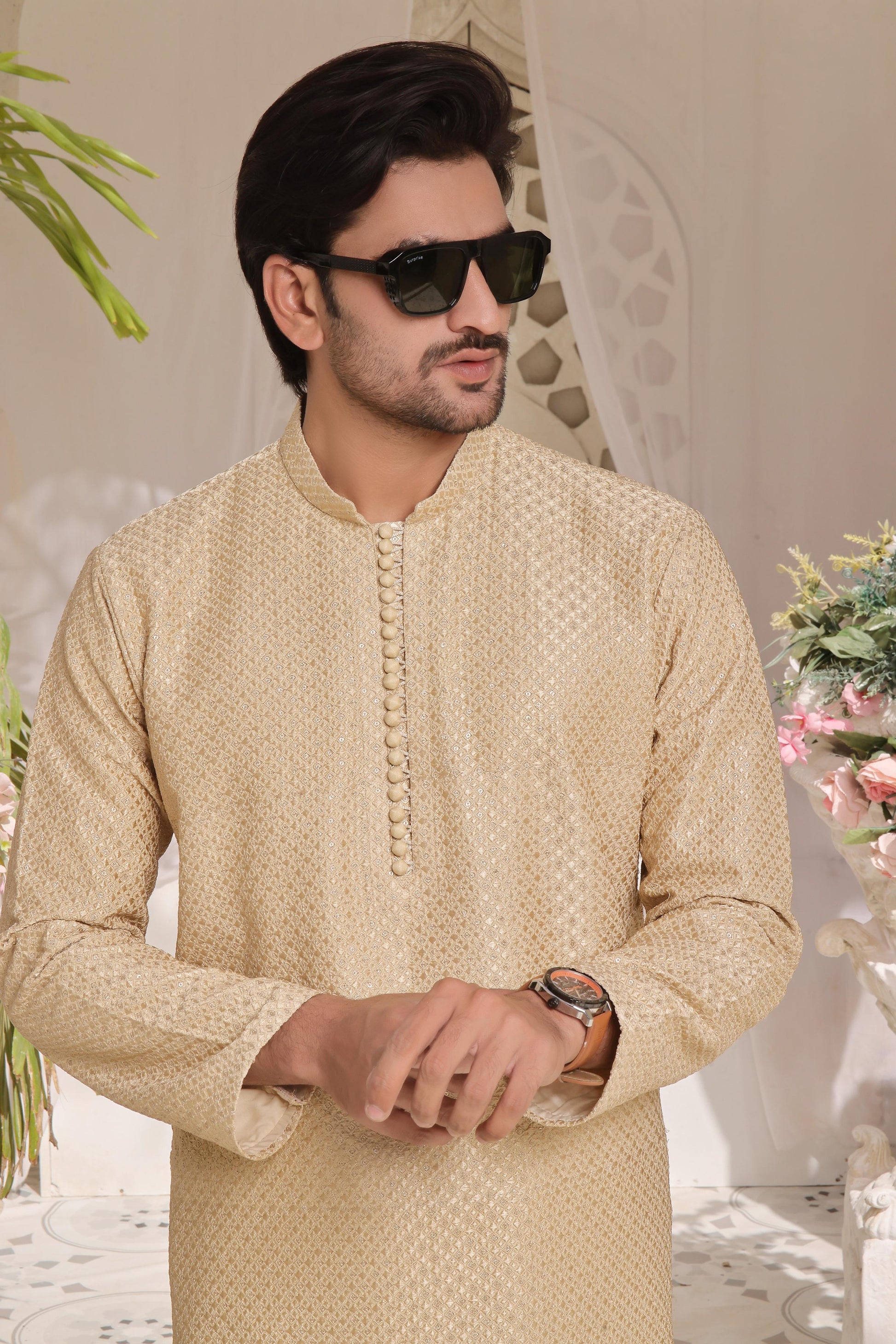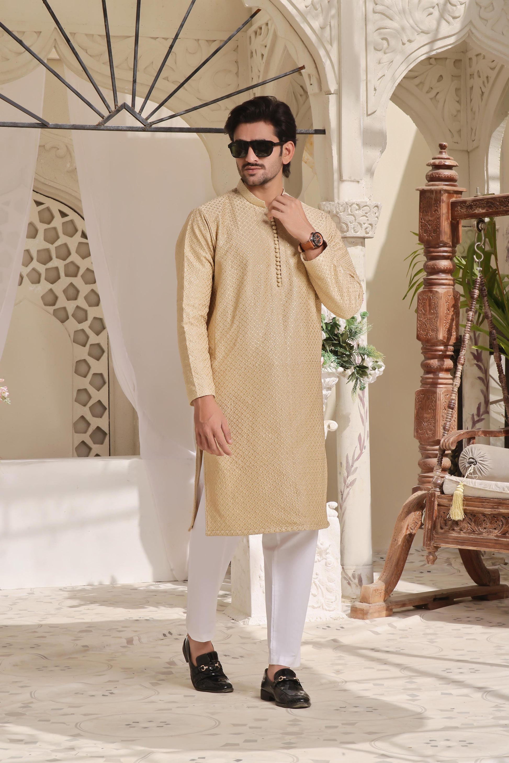Men's Formal Sequence Embroidered Kurta Pyjama.