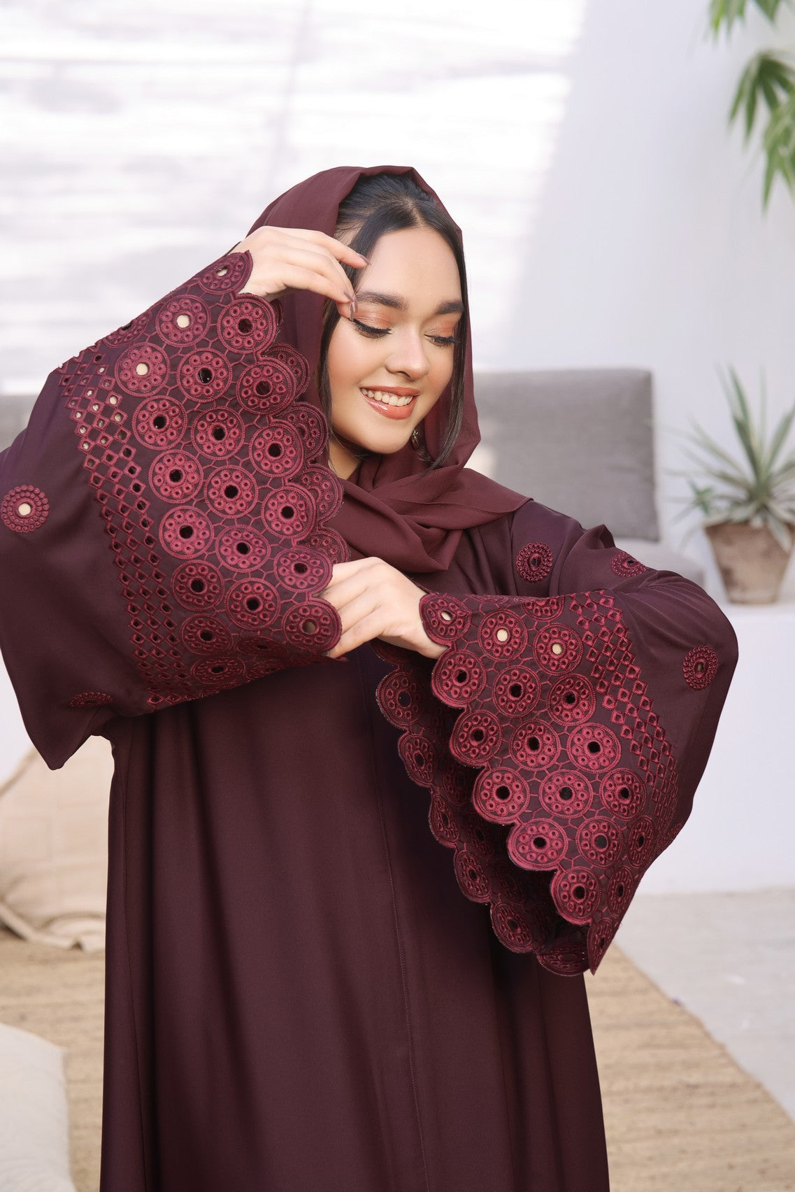 - Elegant Detailing: The computer thread embroidery on the sleeves enhances the beauty of the abaya, making it perfect for both casual and formal occasions.