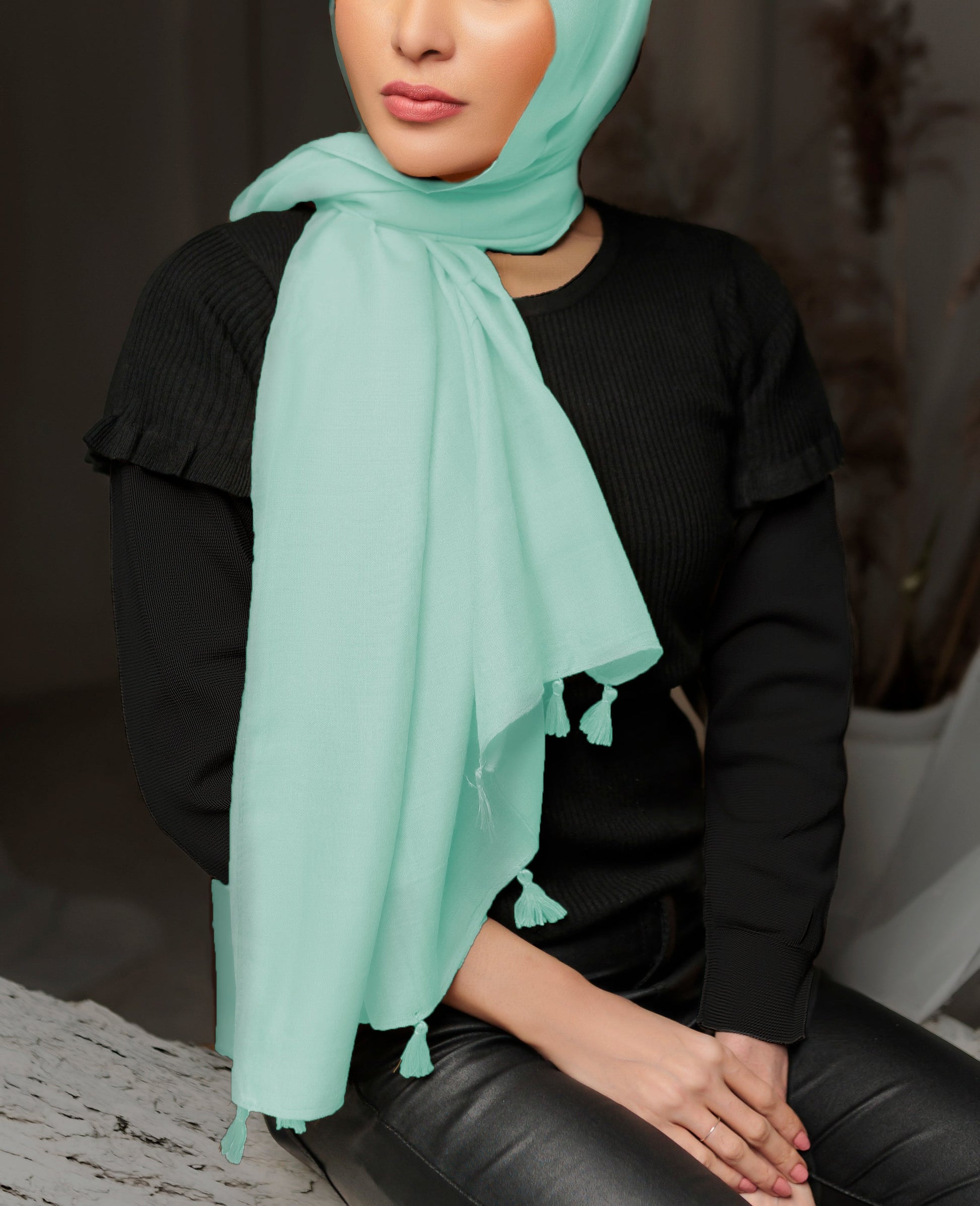 A beautiful and great stitches hijab in premium lawn fabric with tussles, perfect to pair it with solid outfit