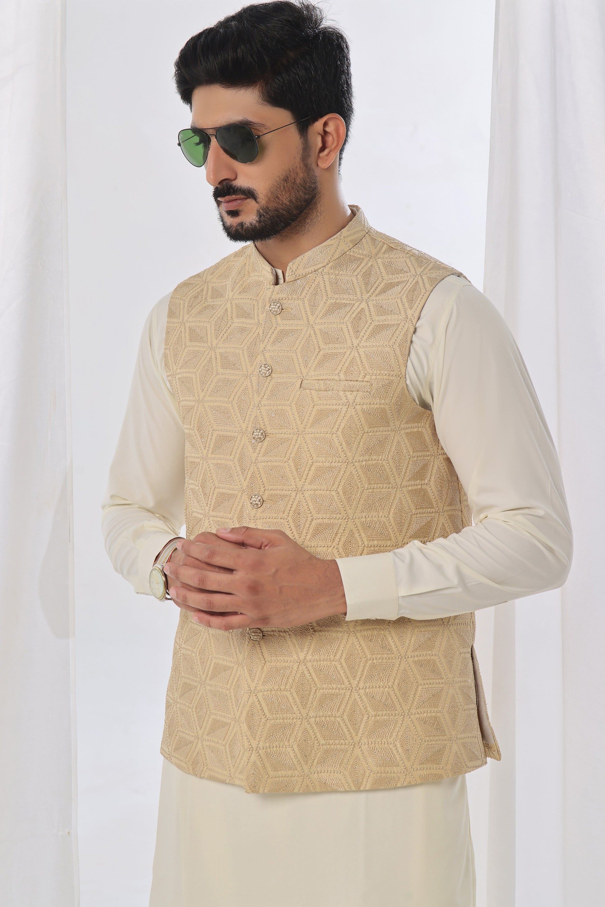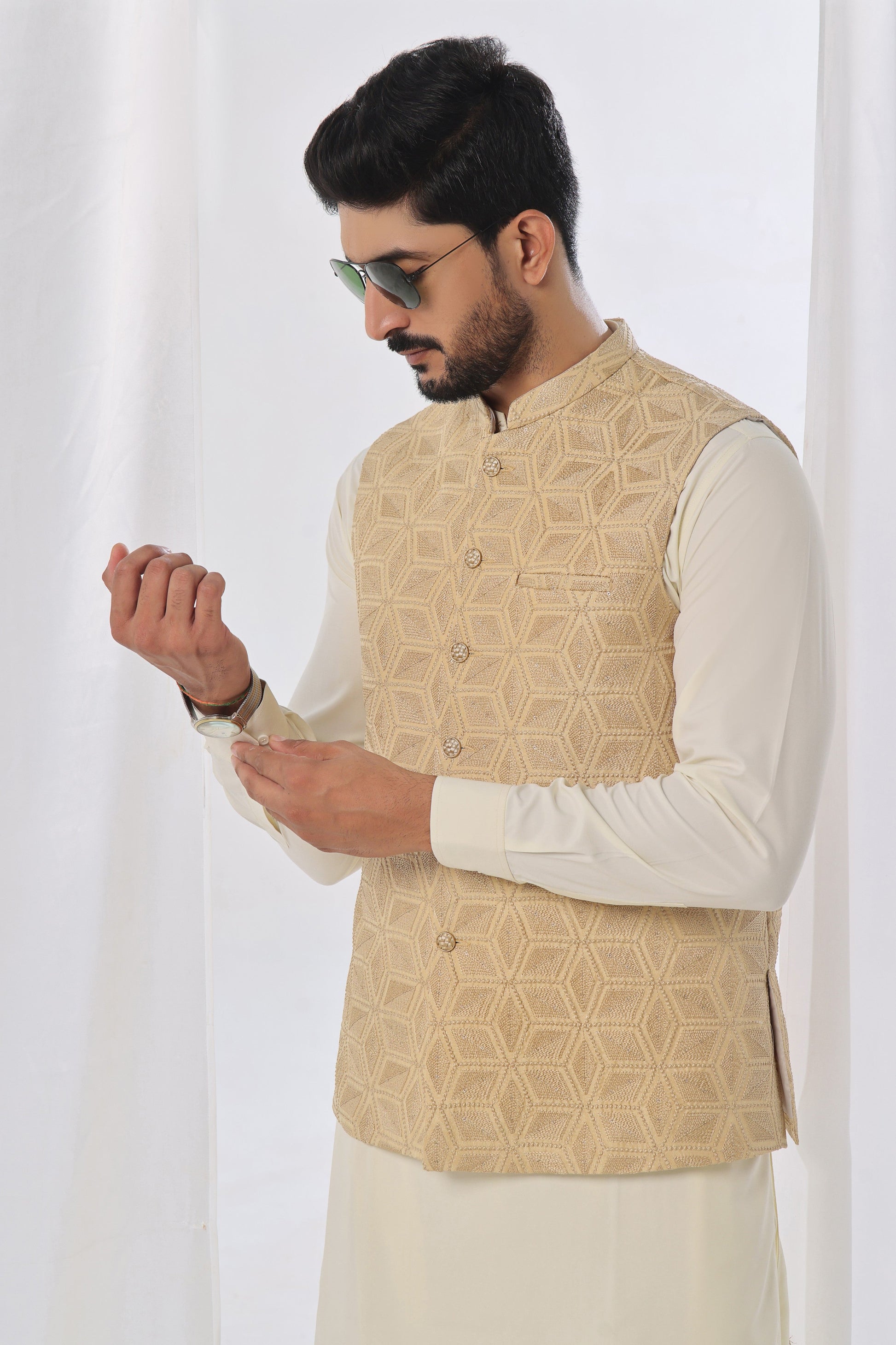 Men's Formal Raw Silk Waistcoat with Computer Embroidery