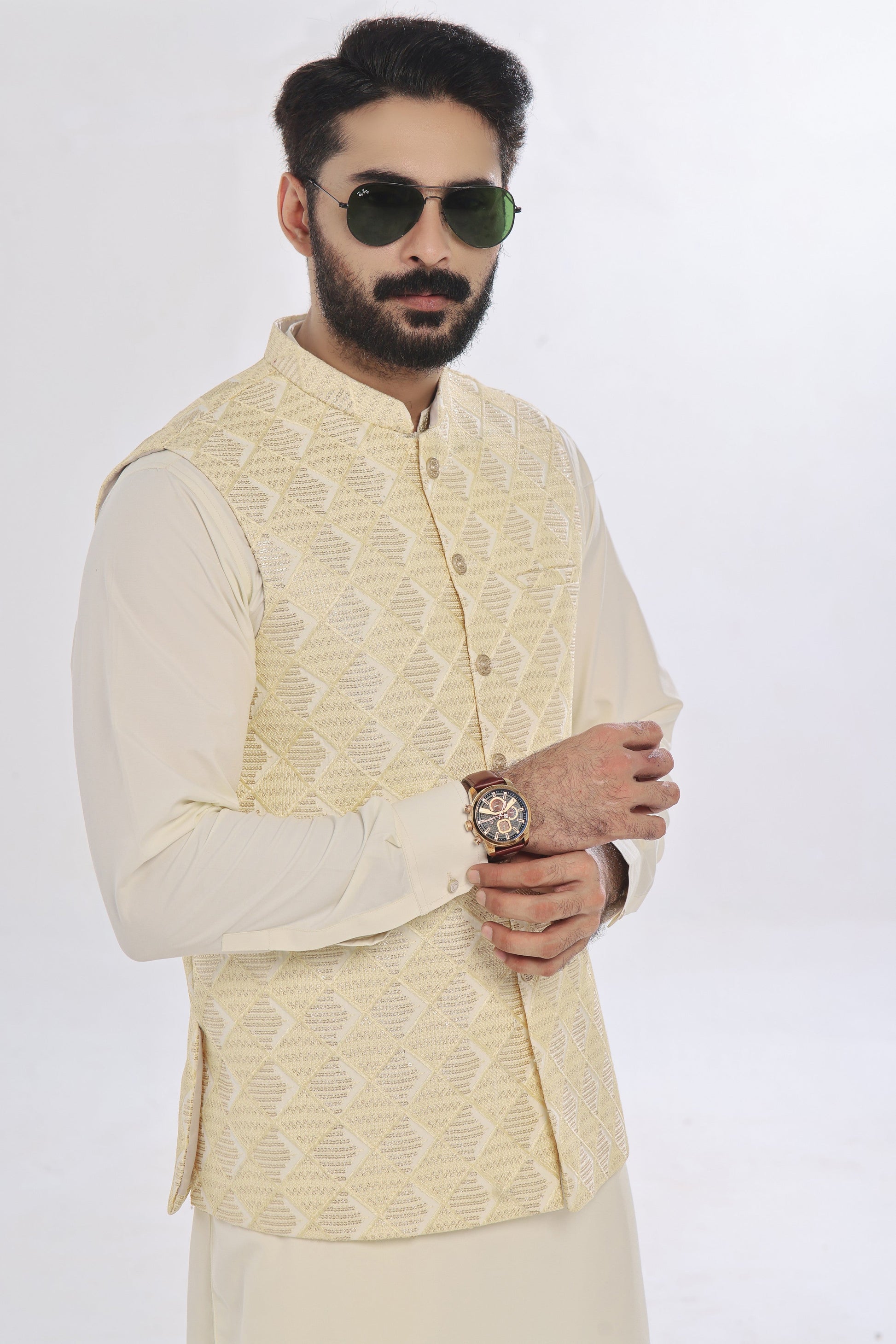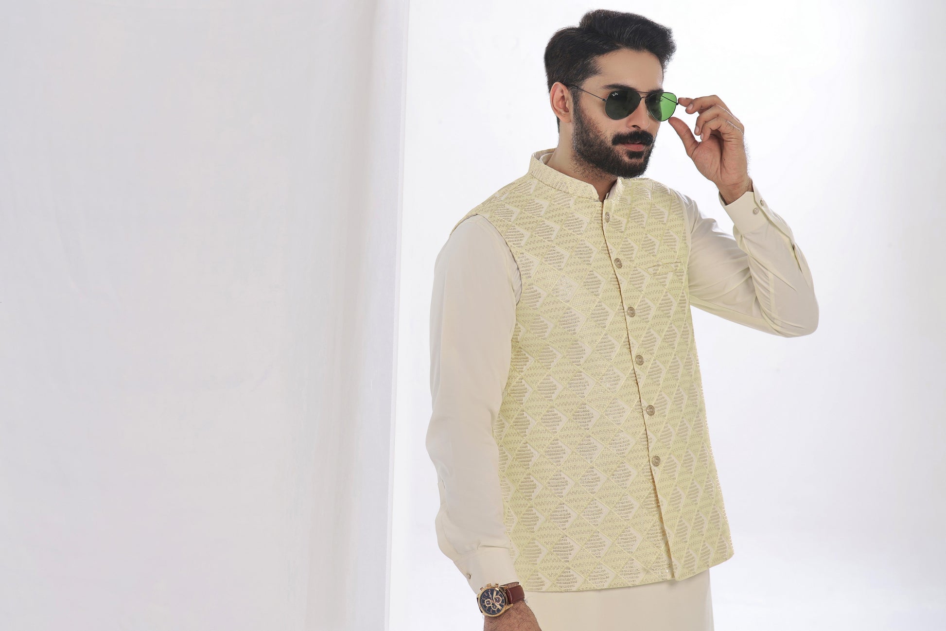 Men's Formal Raw Silk Waistcoat with Computer Embroidery