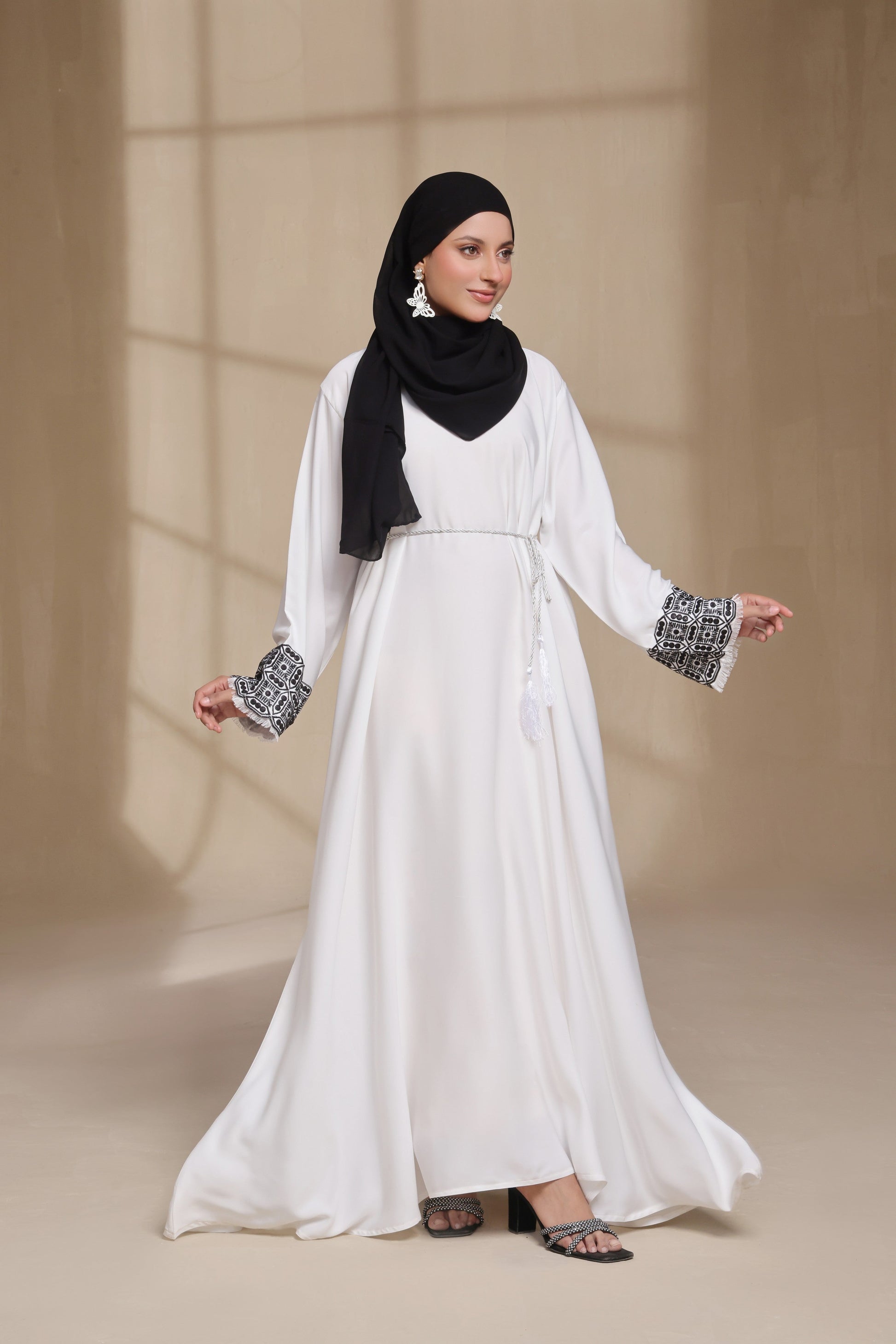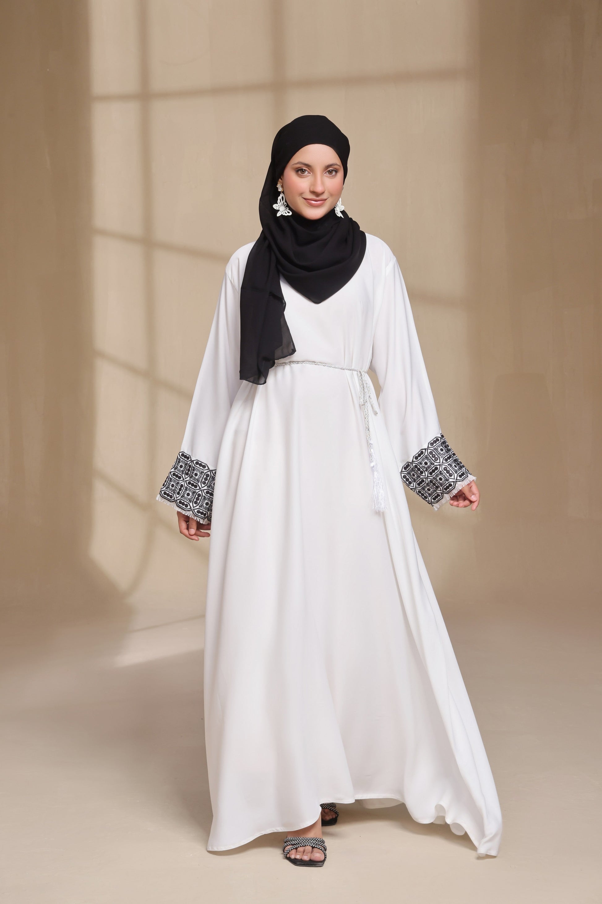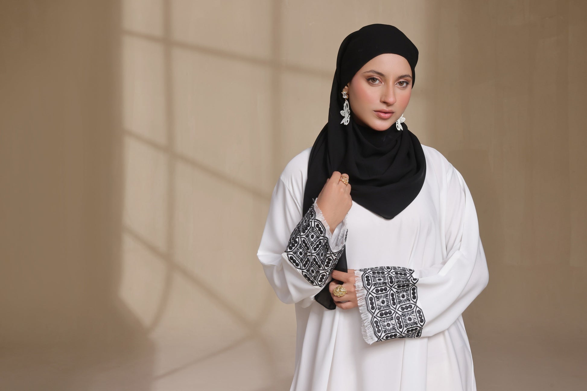 🖤 Black Hijab Included: A coordinated black hijab completes the look with balanced elegance.
