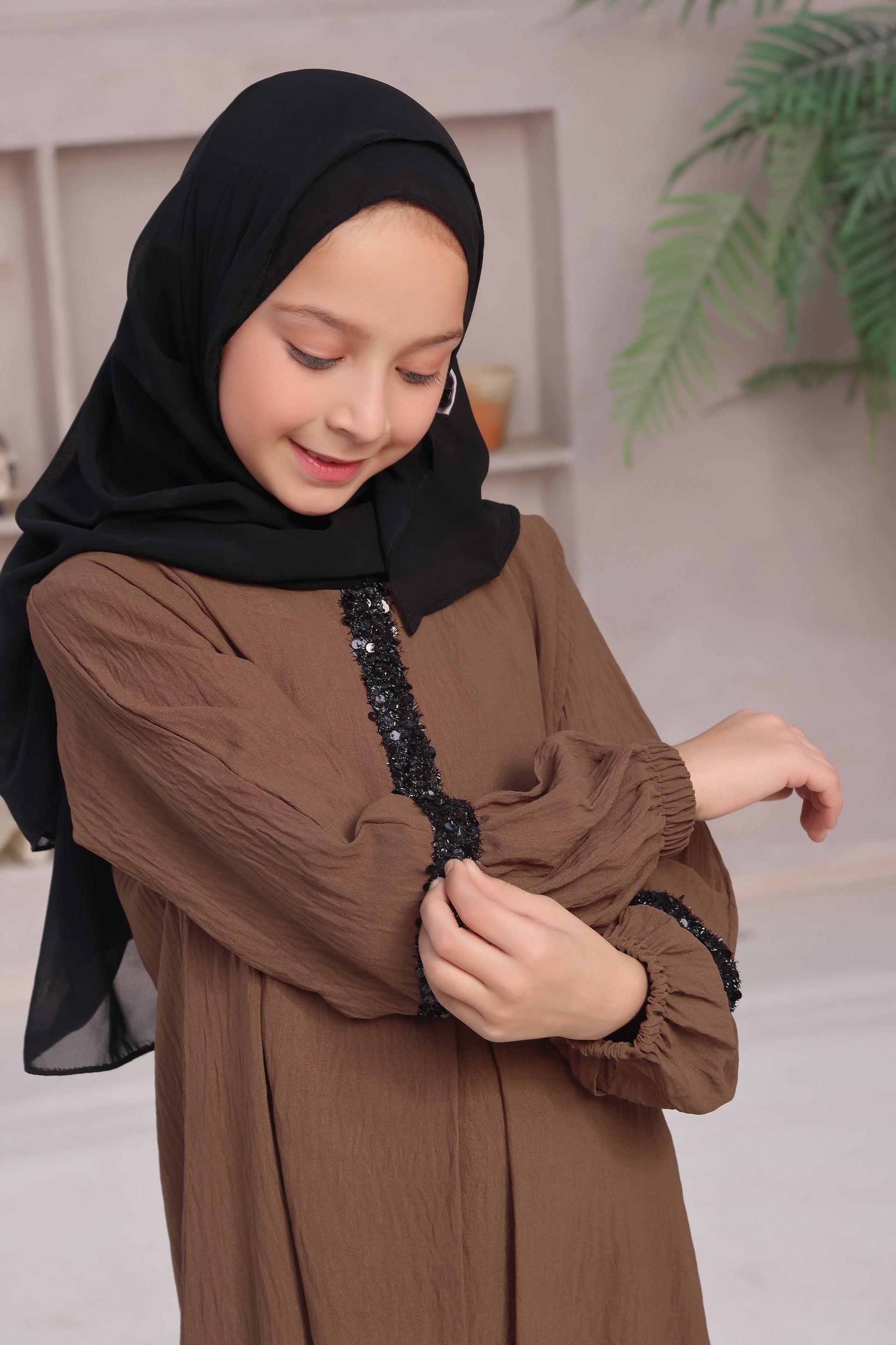- Beautiful Sequin Lace Work on Front and Sleeves with Contrast Black Hijab: Intricate sequin lace detailing on the front and sleeves, complemented by a stylish contrast black hijab that enhances the overall design.